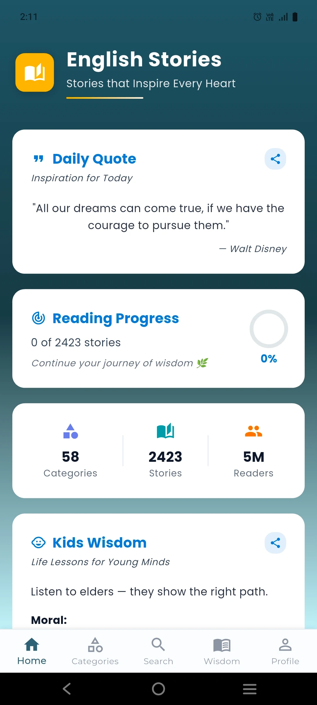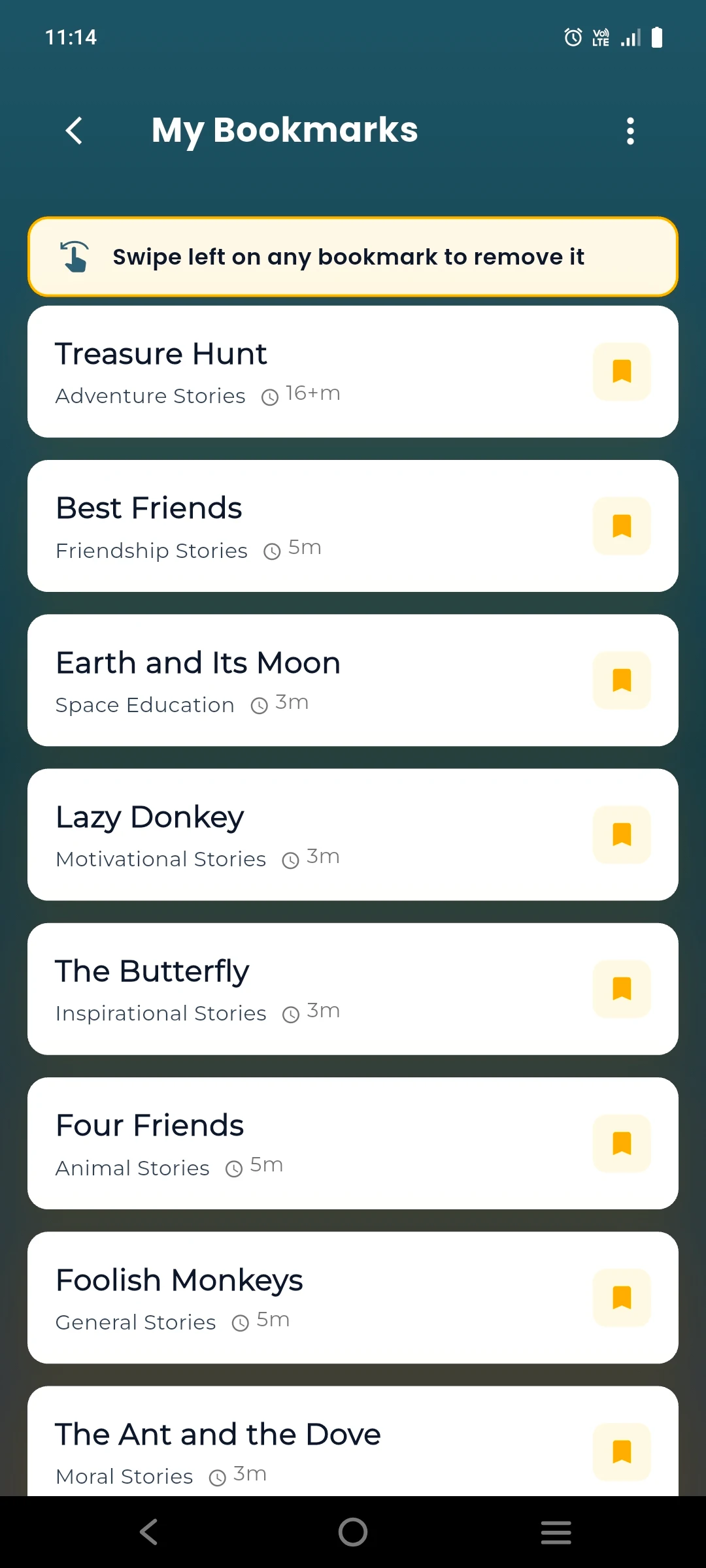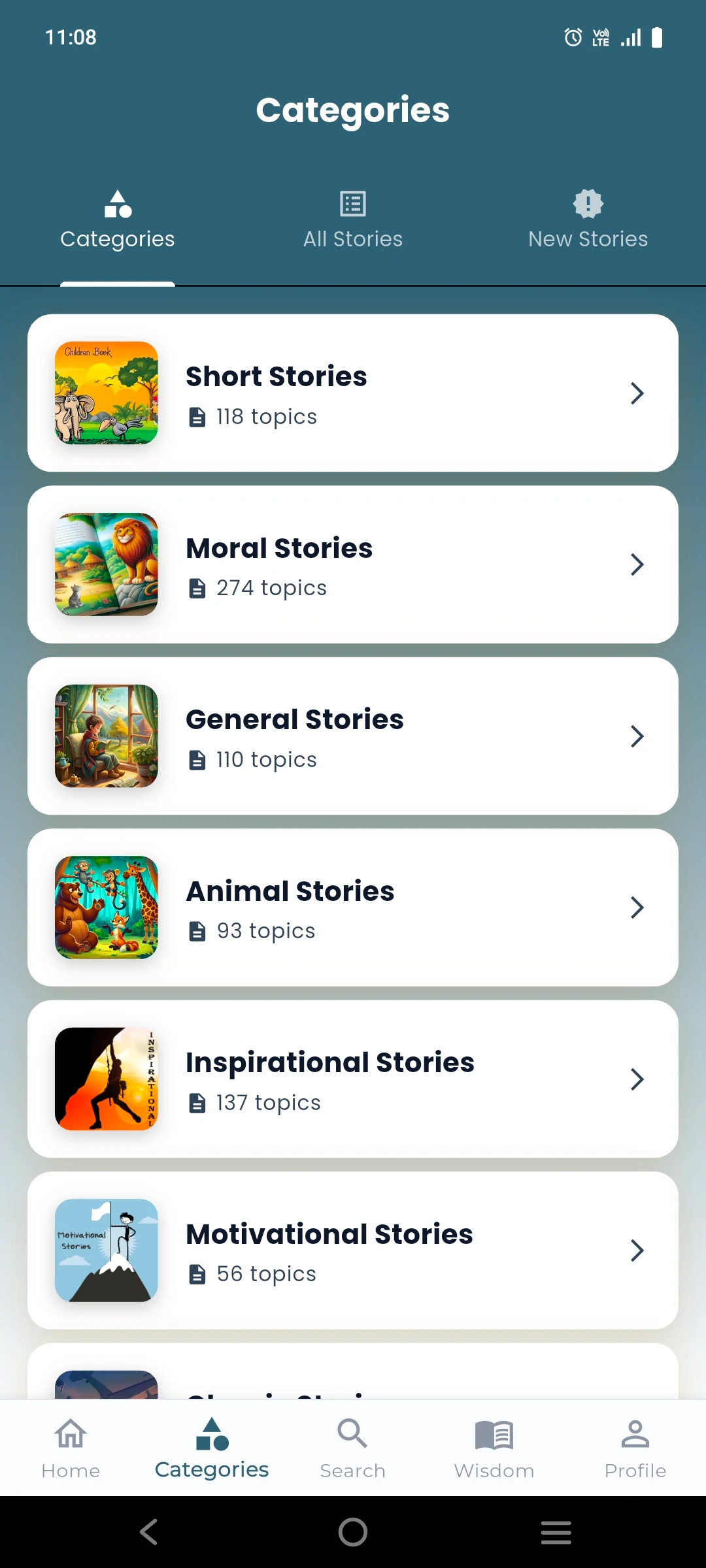 When I read the stories then I face many problem, it's not working properly. The stories are not interesting and too boarding. Don't try this app, it's time waste application. Overall stories quality ,word meaning and selection are disappointed.
