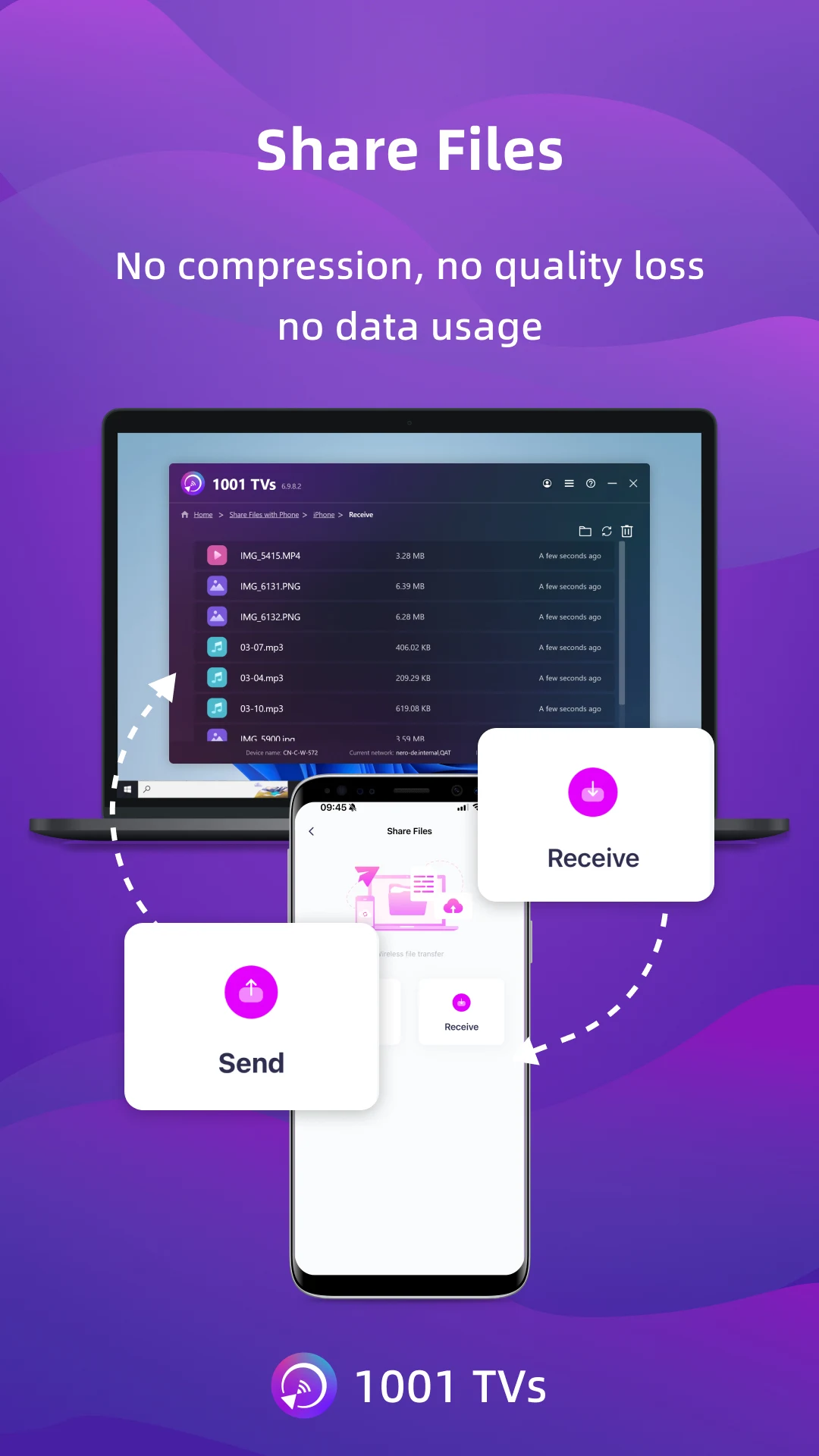 1001 TVs - A powerful Android app for screen mirroring with smart TVs (Roku TV, Fire TV, Chromecast), casting Android screens to computers, and mirroring to web browsers.