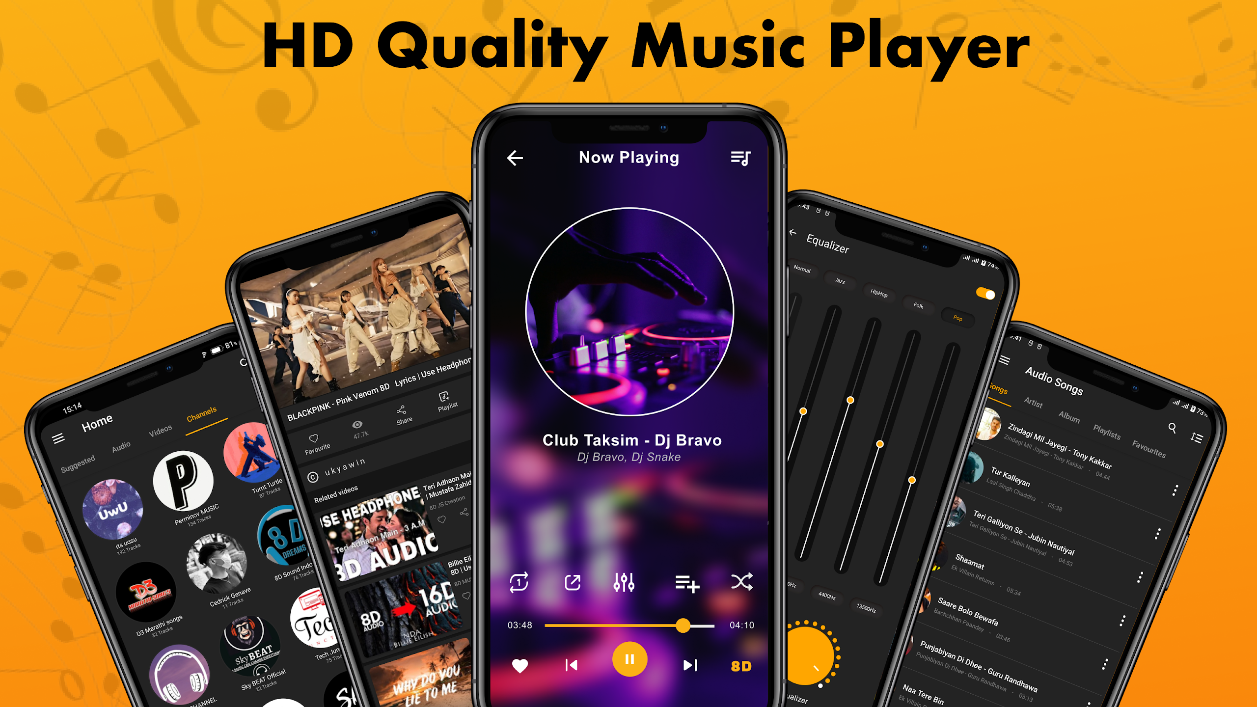 Dive into a mesmerizing audio journey with customizable 8D effects, Equalizer & Bass Booster for every music lover!