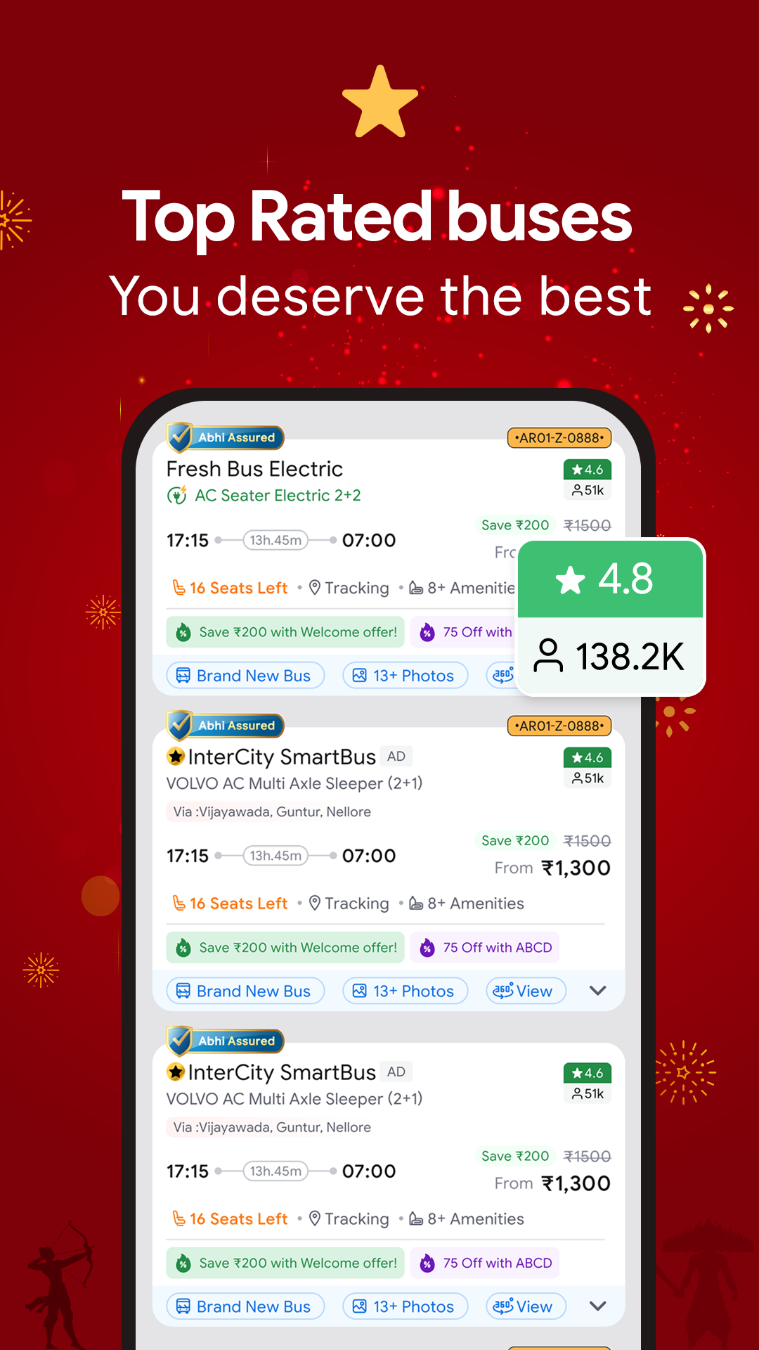 3. Multi-modal Booking: In addition to bus tickets, the app also facilitates booking for IRCTC train tickets and flight tickets, offering a one-stop solution for travel bookings.