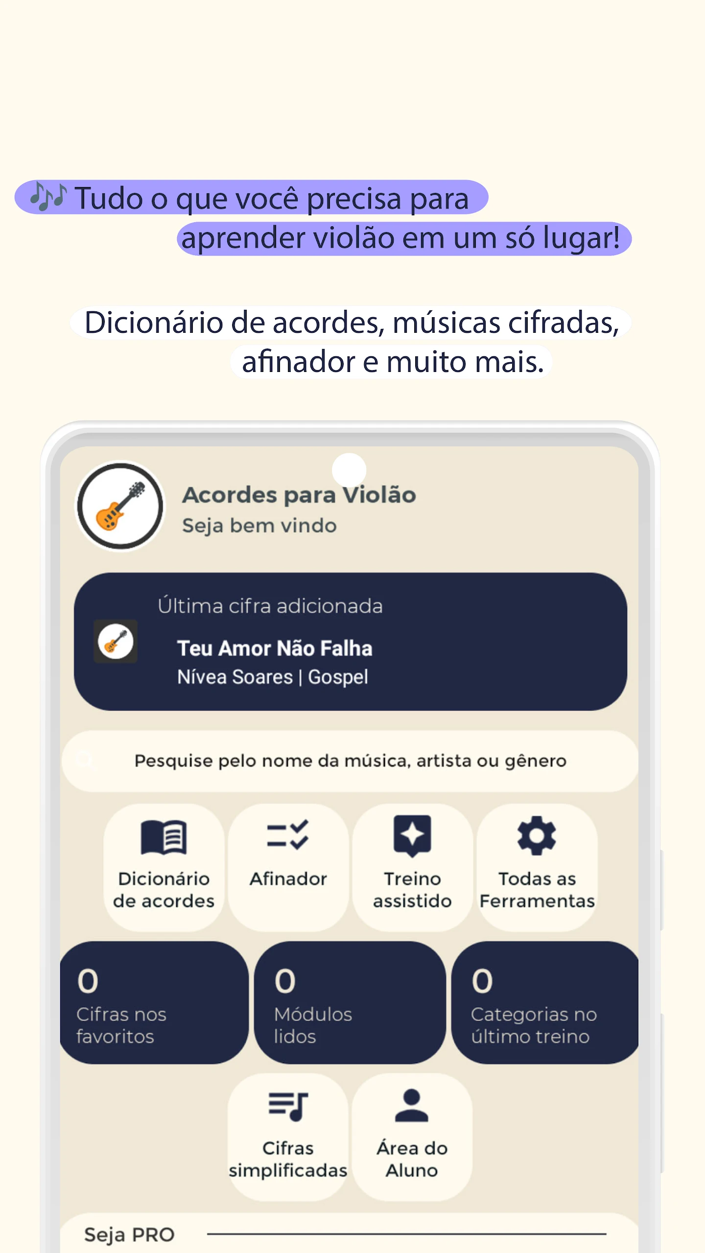 Dedicate a few minutes of your day to learn incredibly with this innovative and modern tool in just a few steps. Play songs of various rhythms, whether modern or old, gospel or MPB, sertanejo or pagode.