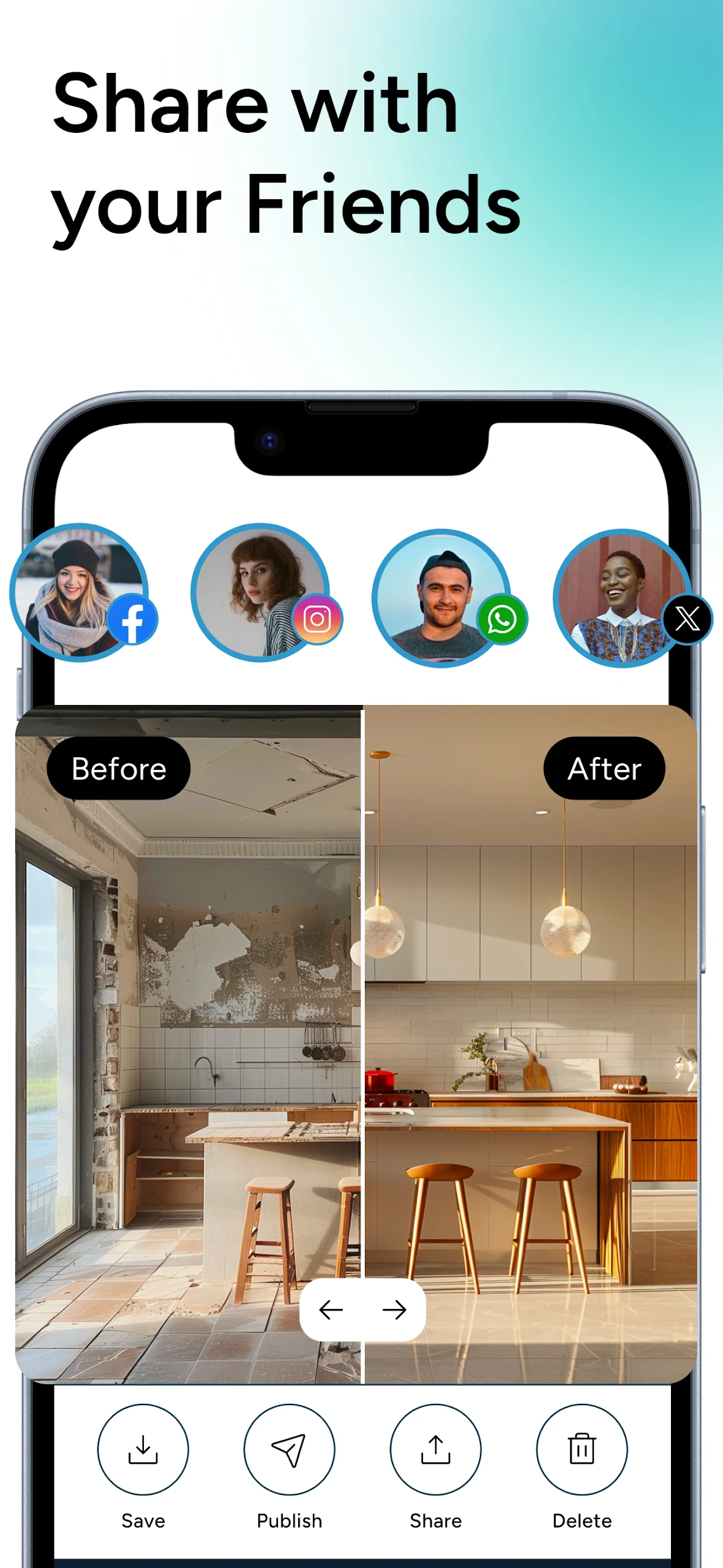 - Save and Share: Document your favorite designs and store them for future use. Showcase your revamped spaces to friends, family, or professional designers for insightful feedback and inspiration. Collaborate to bring your creative ideas to life like never before.