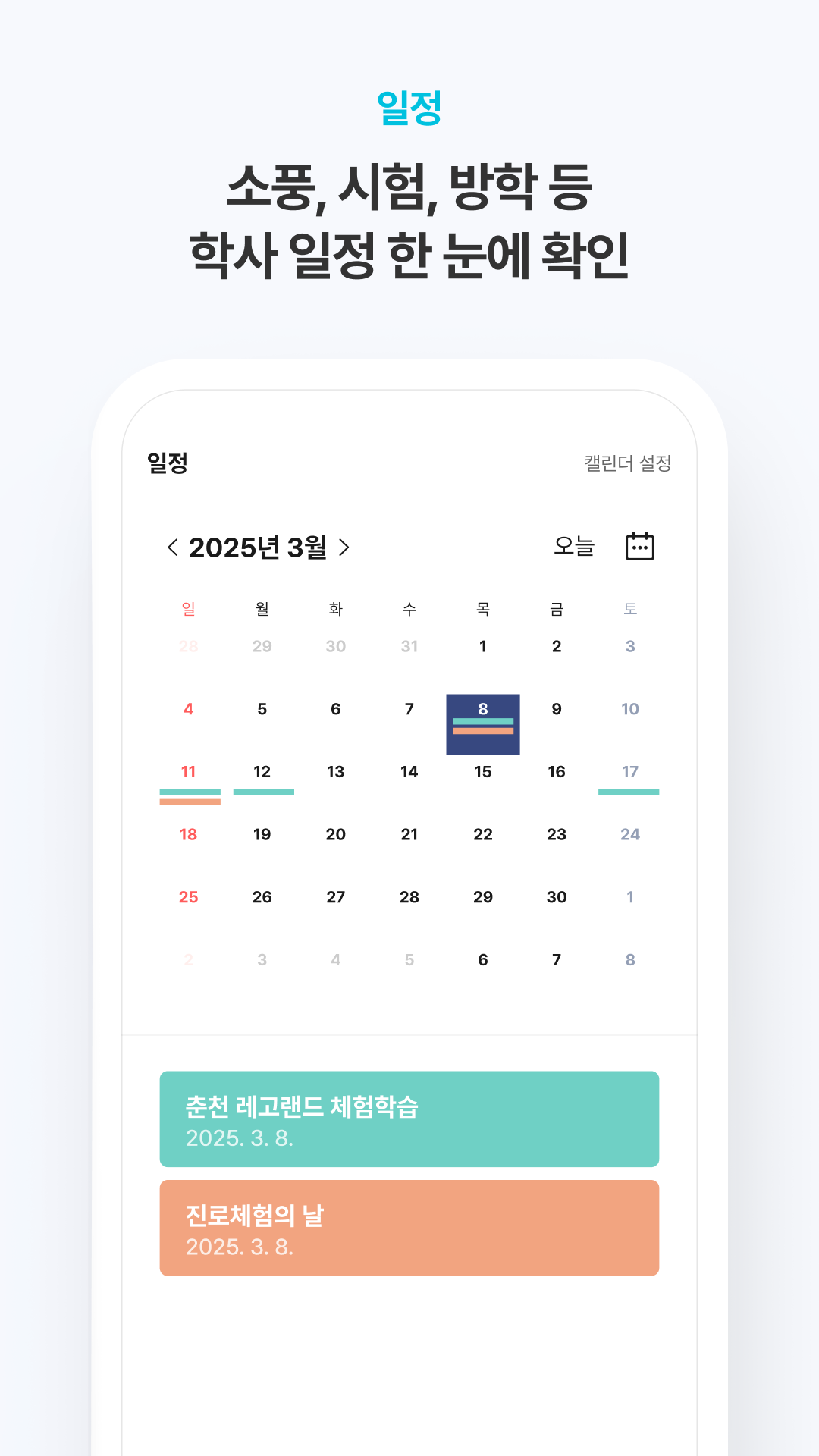 Stay updated with school news, check meal menus, take surveys, and consult teachers all in one app!