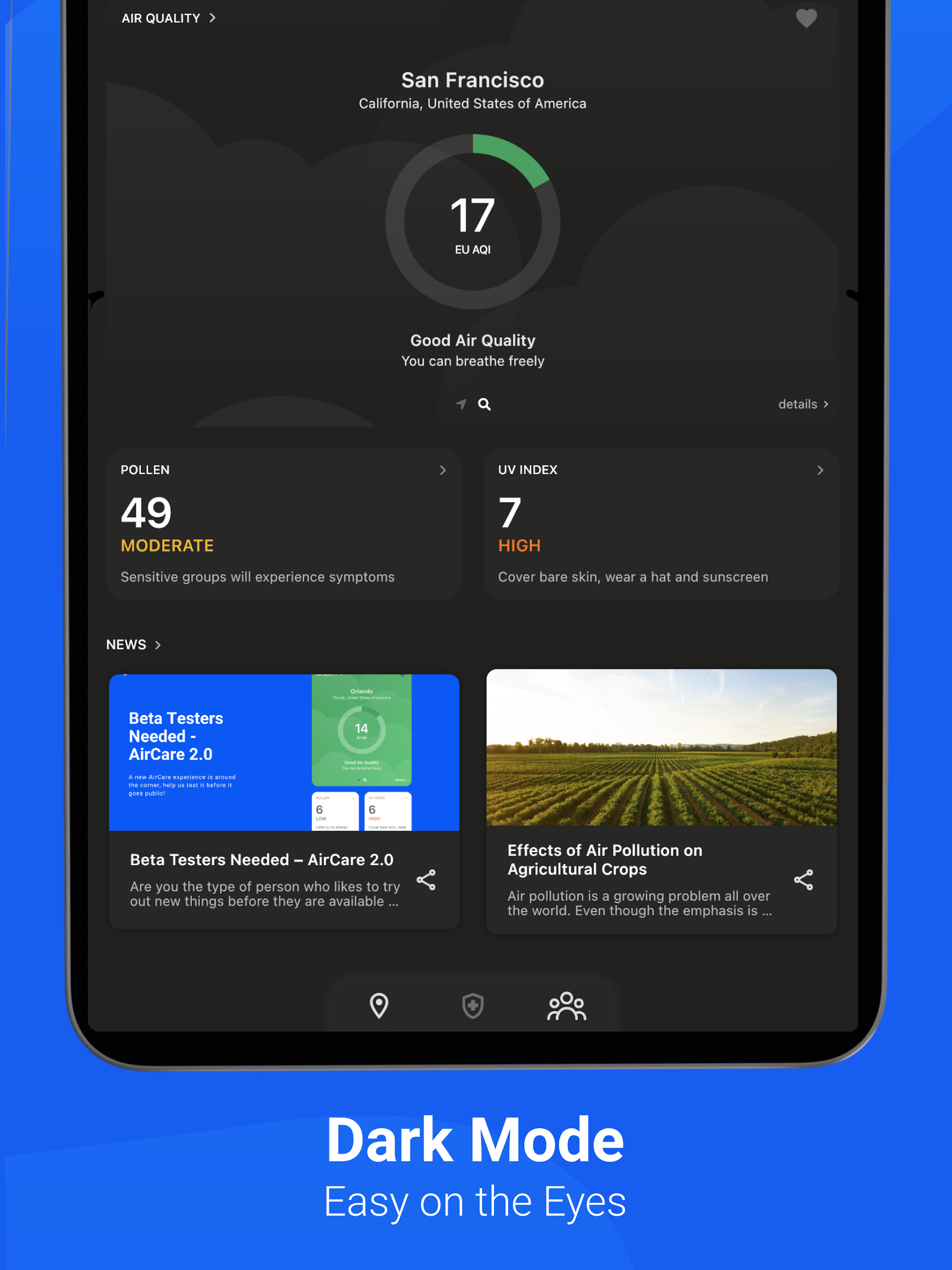 AirCare - the essential application for monitoring air quality, pollen levels, and UV exposure! It has been recognized by Forbes, BBC, NASA, Google, and has received accolades from the United Nations.
