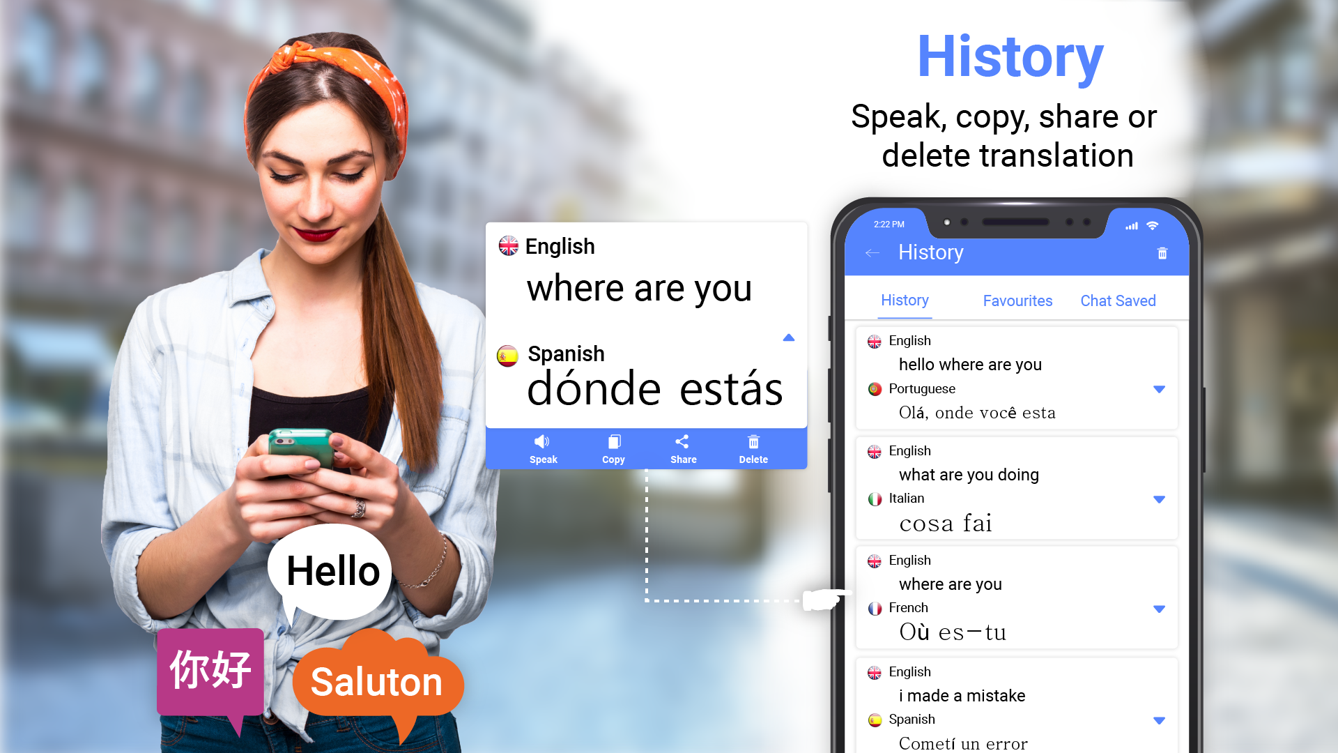 - Translation of words and sentences in any language