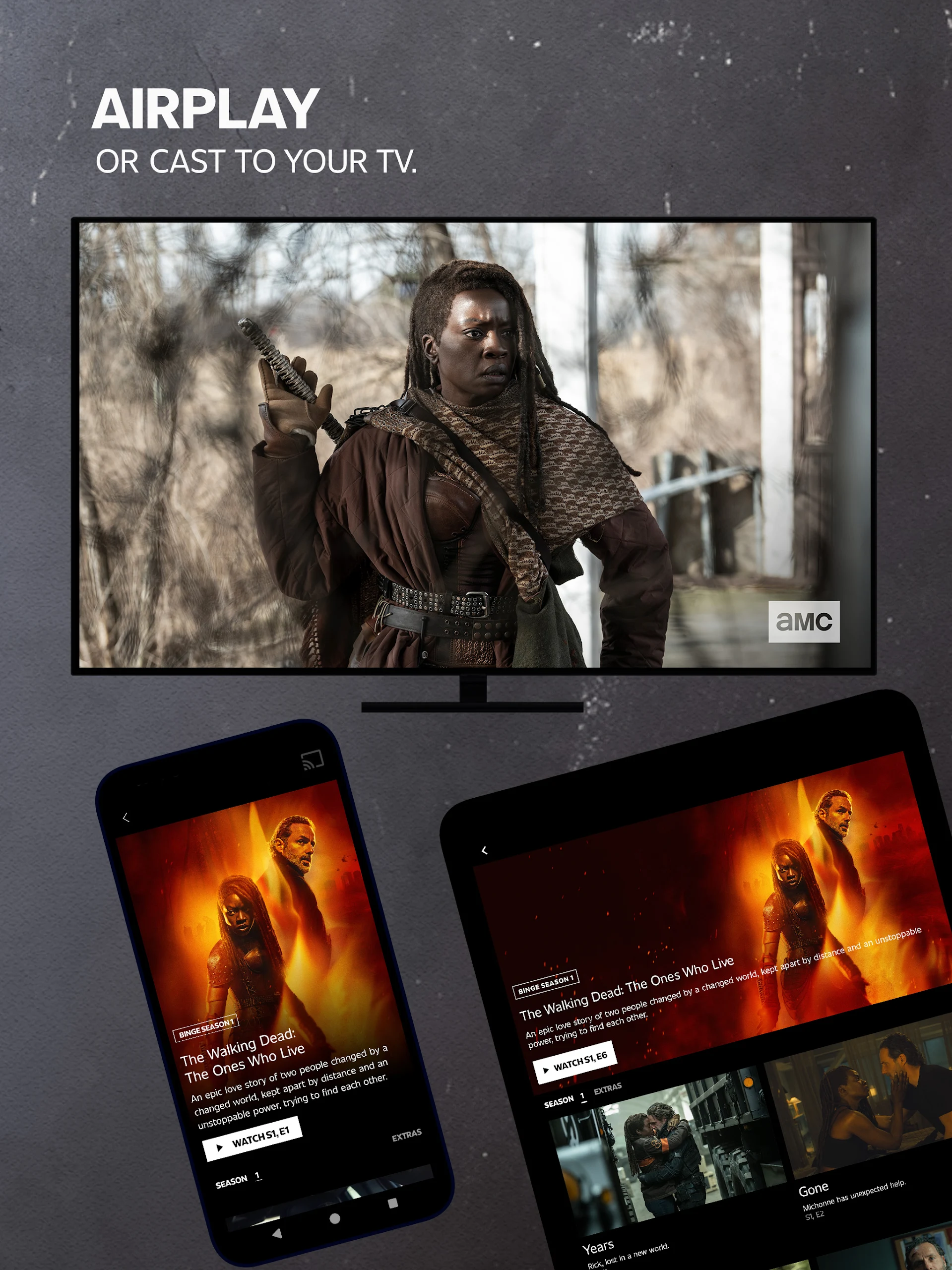 AMC presents a selection of highly popular and critically acclaimed television programs. Sign in using your TV provider credentials to keep up to date with the newest full episodes and bonus videos from your preferred AMC Original Series. Stream content directly from your phone or tablet to your TV using Chromecast.