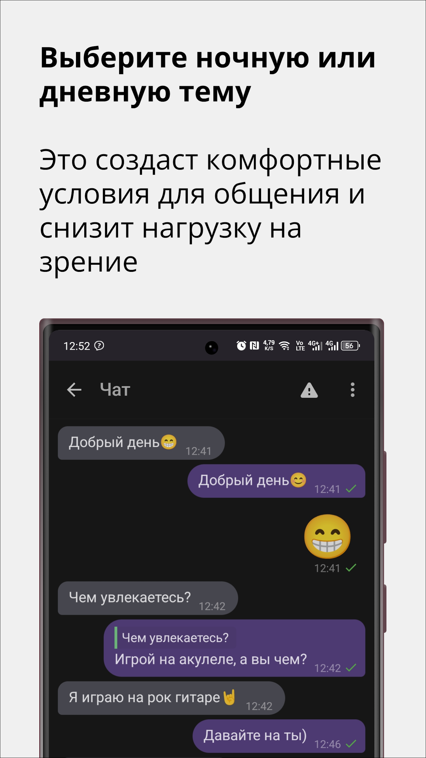 ✔ Notifications indicate when messages have been read, as well as when the conversation partner is typing or recording a voice message