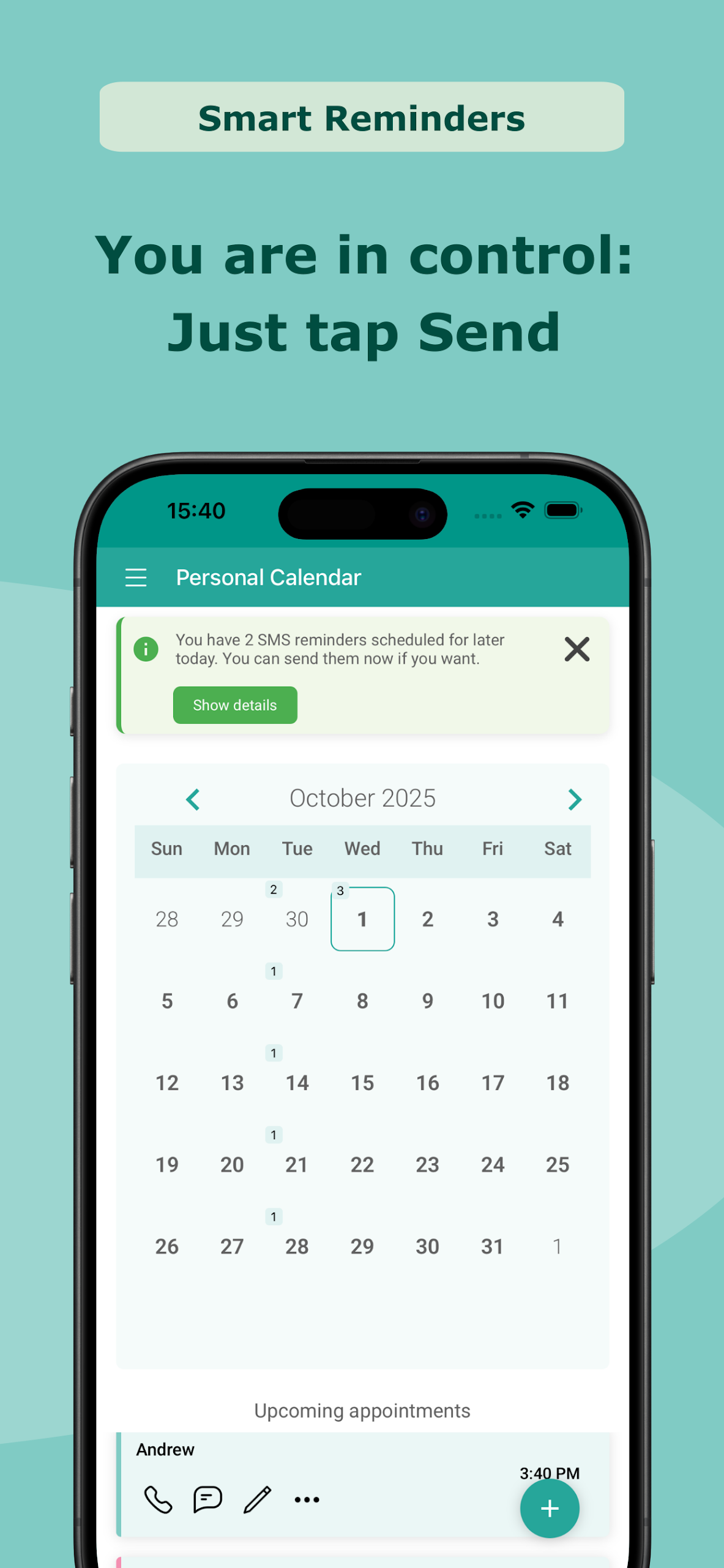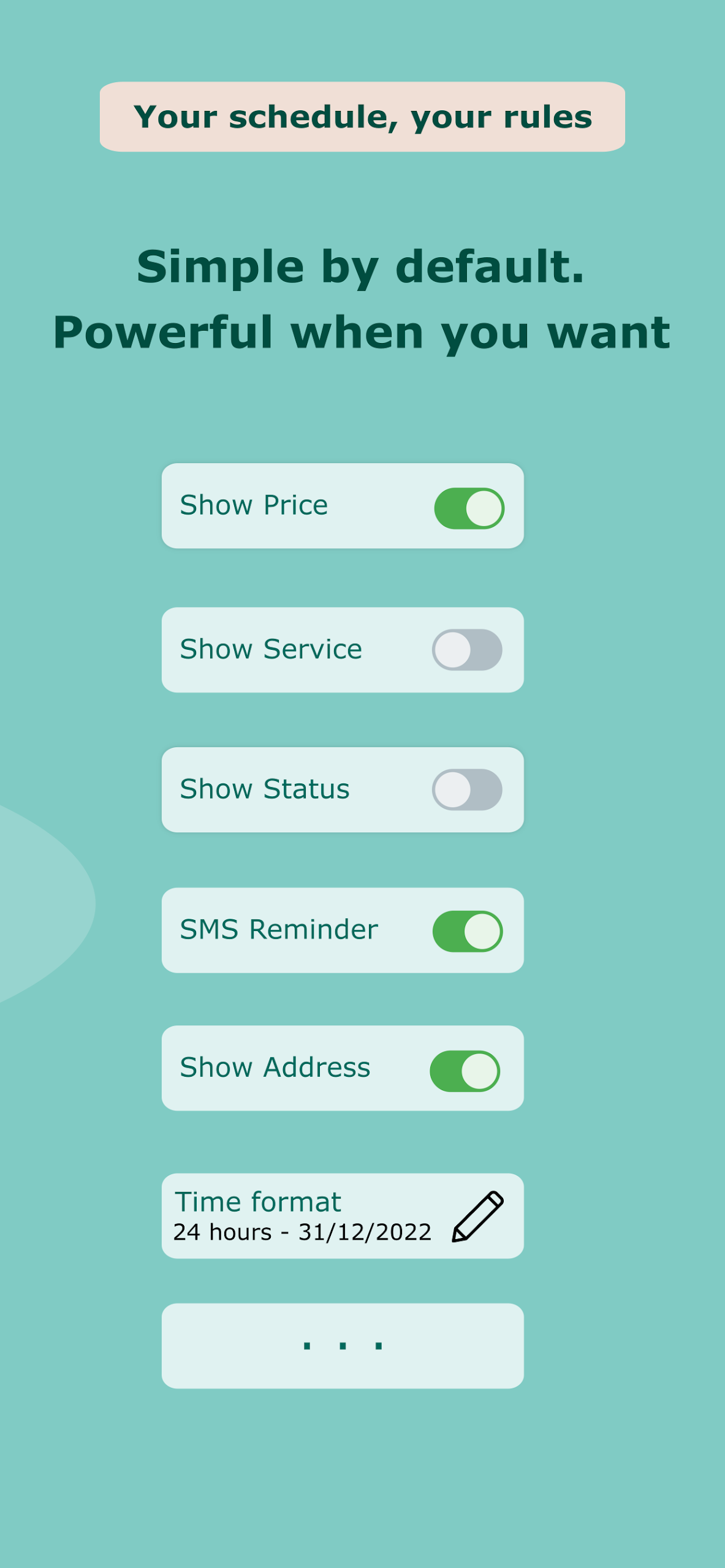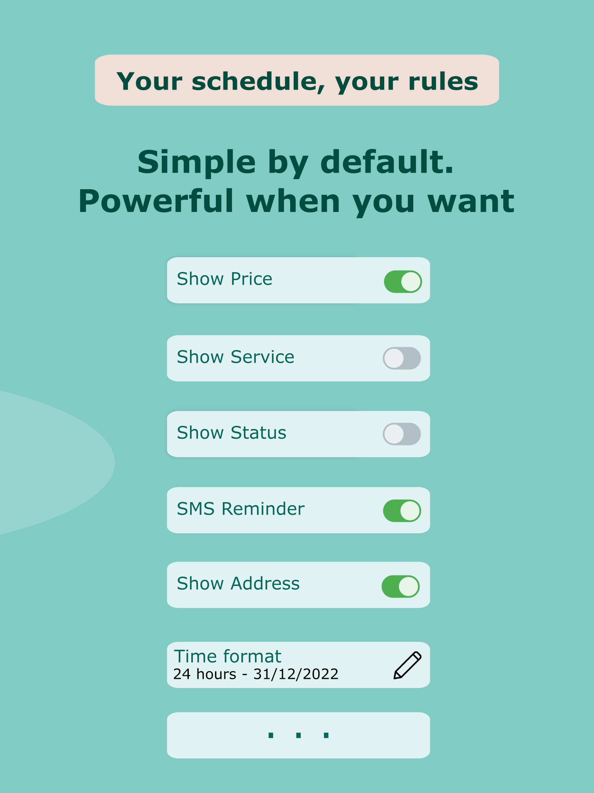 Master your time with customizable scheduling, group sharing, and SMS reminders for seamless appointments management!