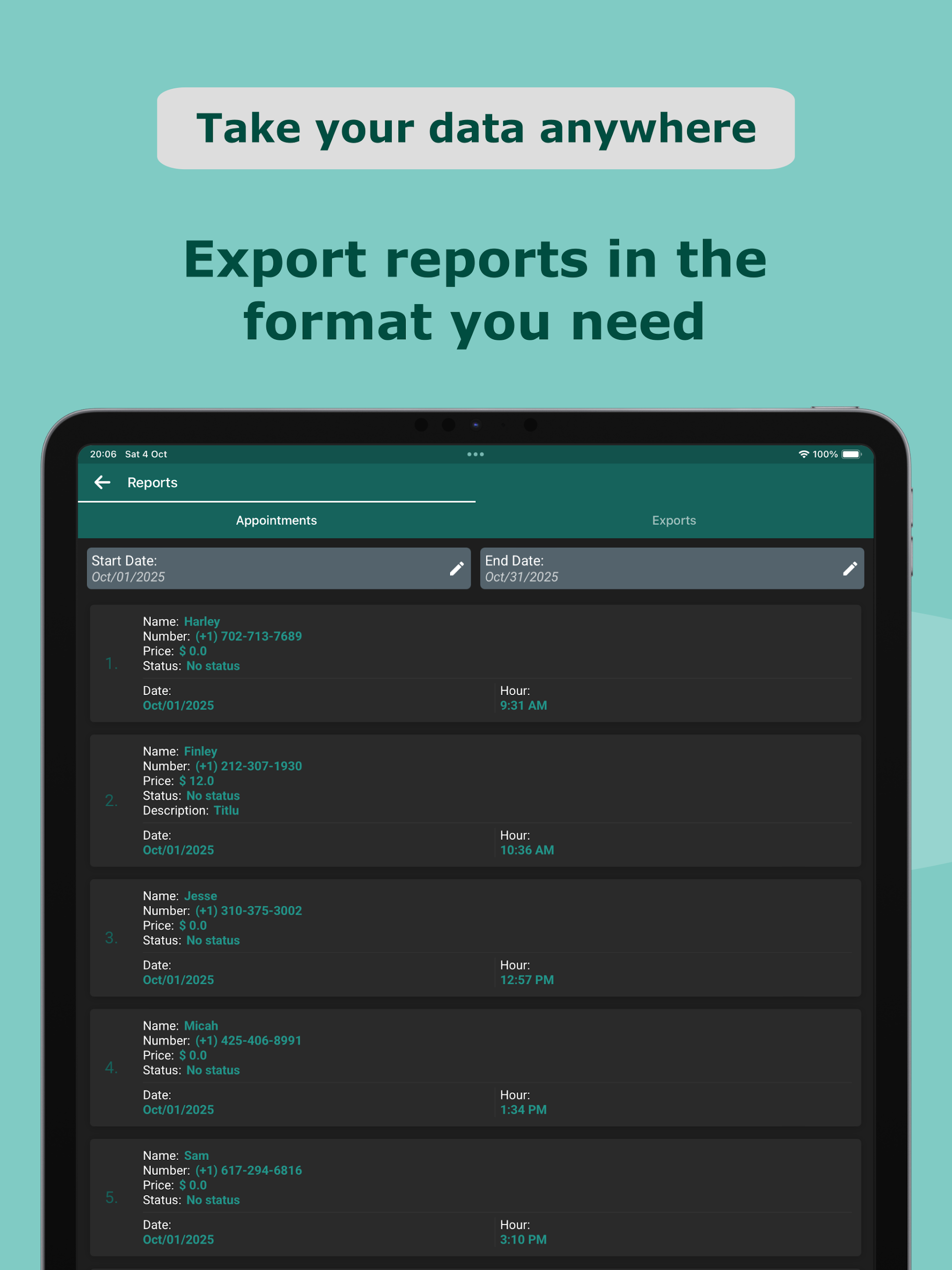 This Appointment Calendar also enables you to send SMS reminders to clients, review and export reports, access comprehensive information about your customers, check all reminders, and view upcoming appointments.
