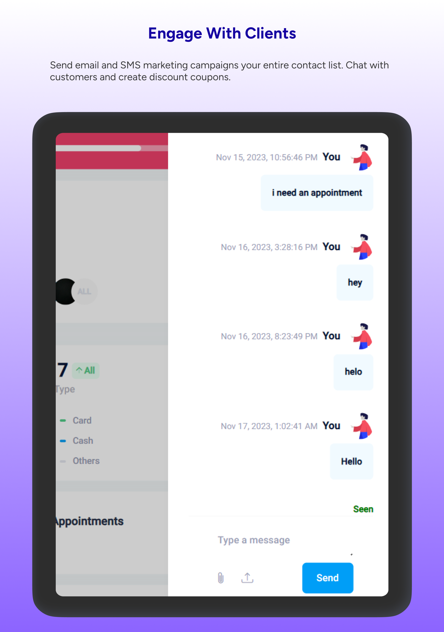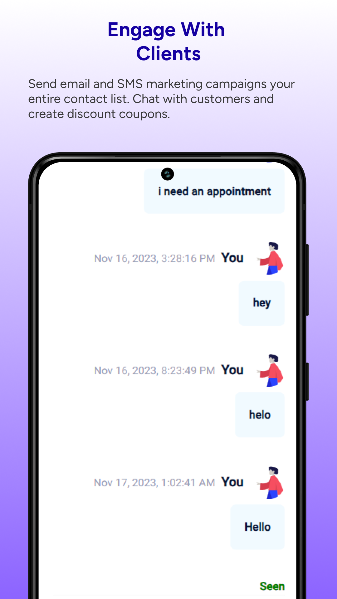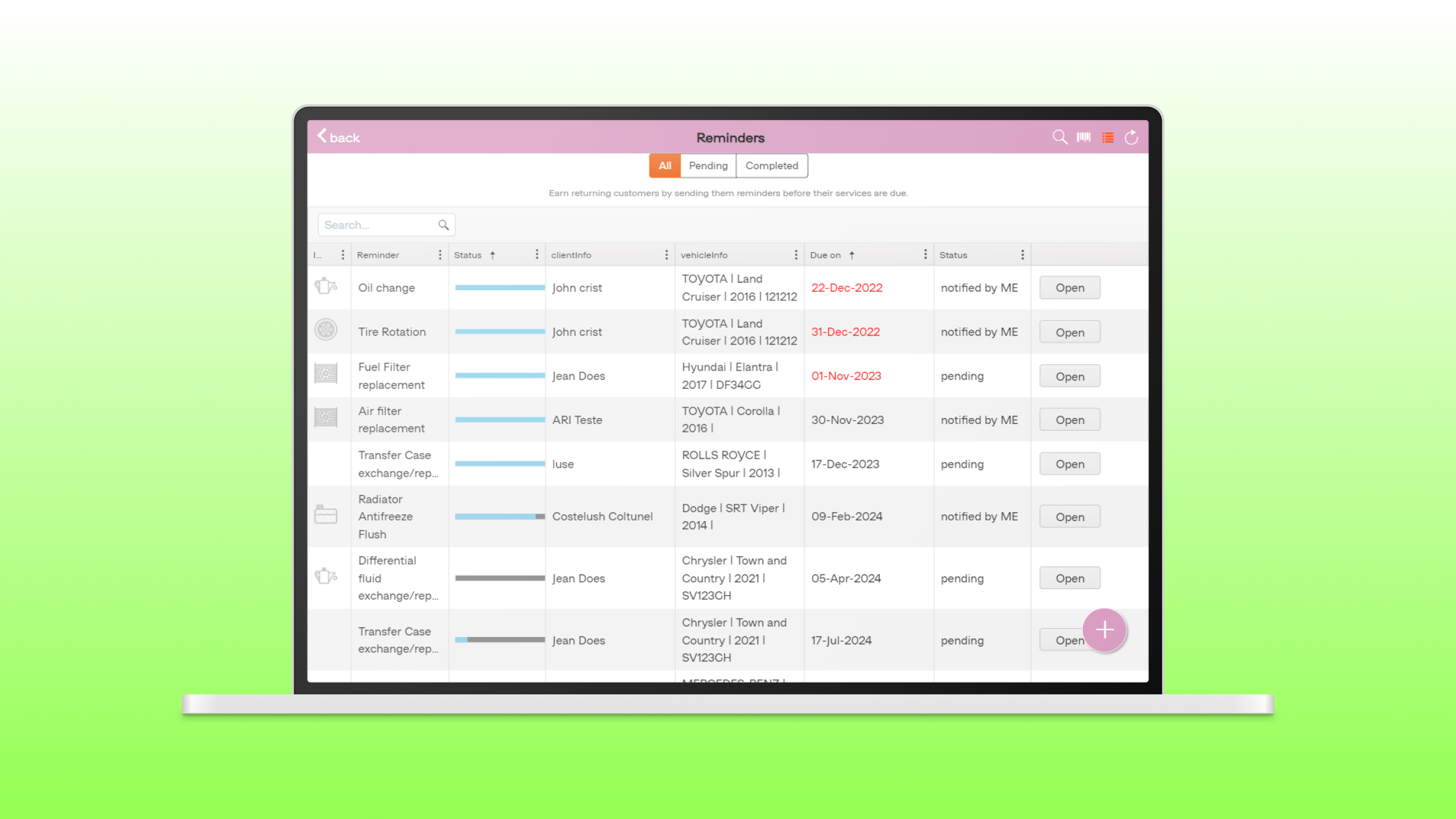 - Schedule service notifications, and the app will automatically send reminder emails to clients when their services are approaching.
