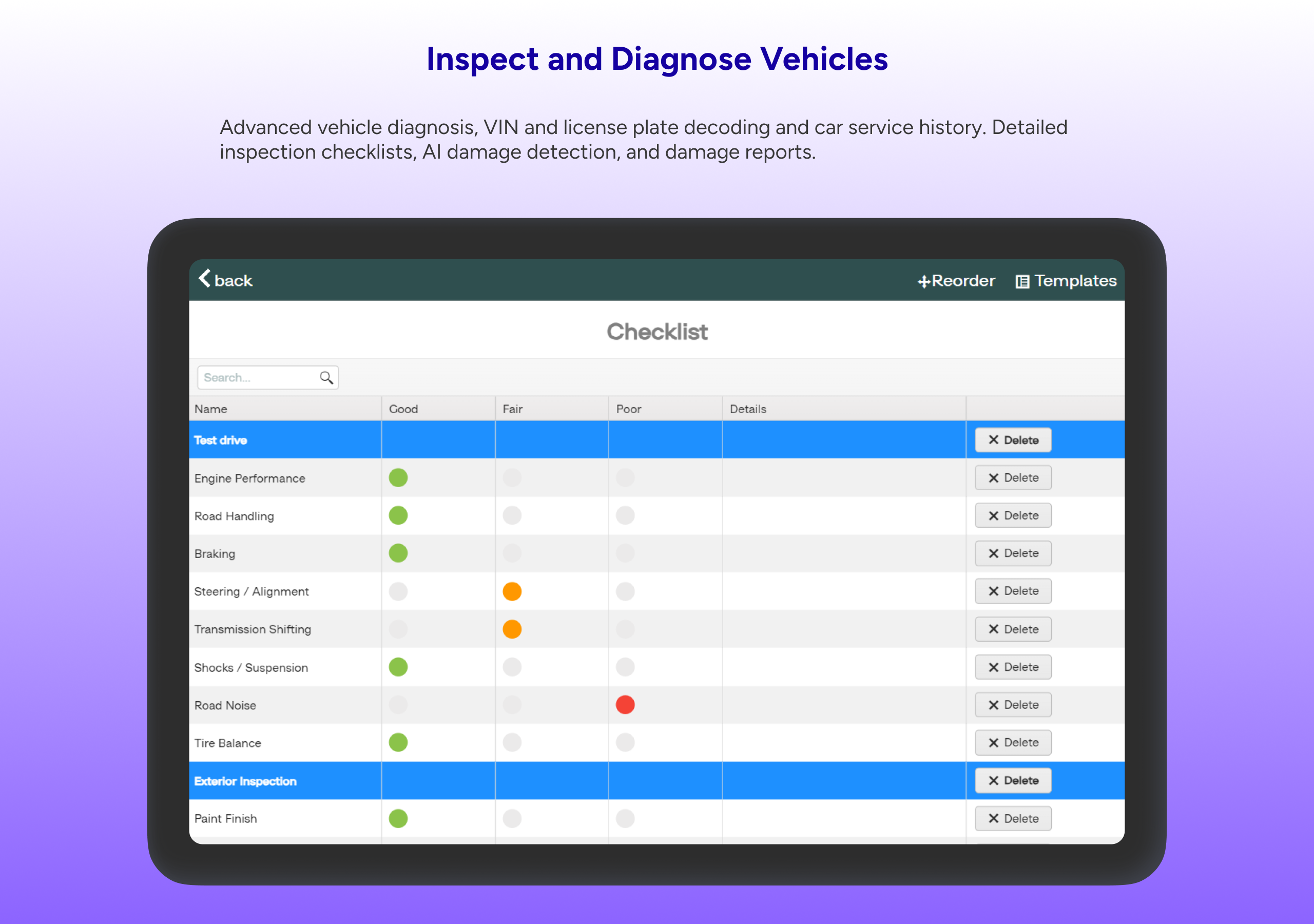 - License plate reader: utilize CarFax integration to obtain vehicle information based on its license plate.