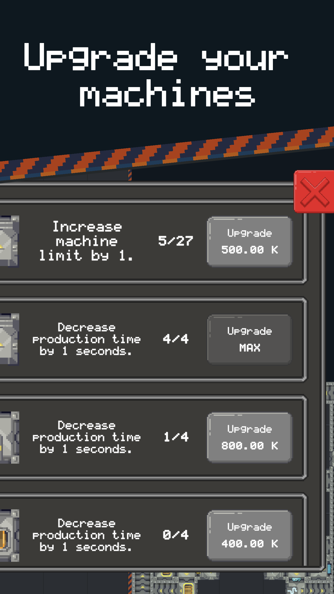 Experience factory management & resource crafting with diverse machines, upgrades, & offline money generation for endless profit.