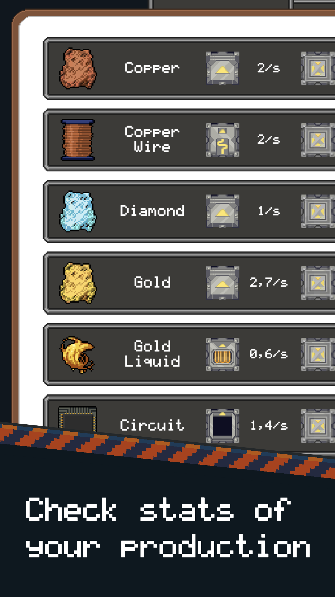 The objective is straightforward: generate resources and sell them. You will begin with a limited selection of machines and basic materials, progressively utilizing advanced machinery to manufacture more intricate resources.