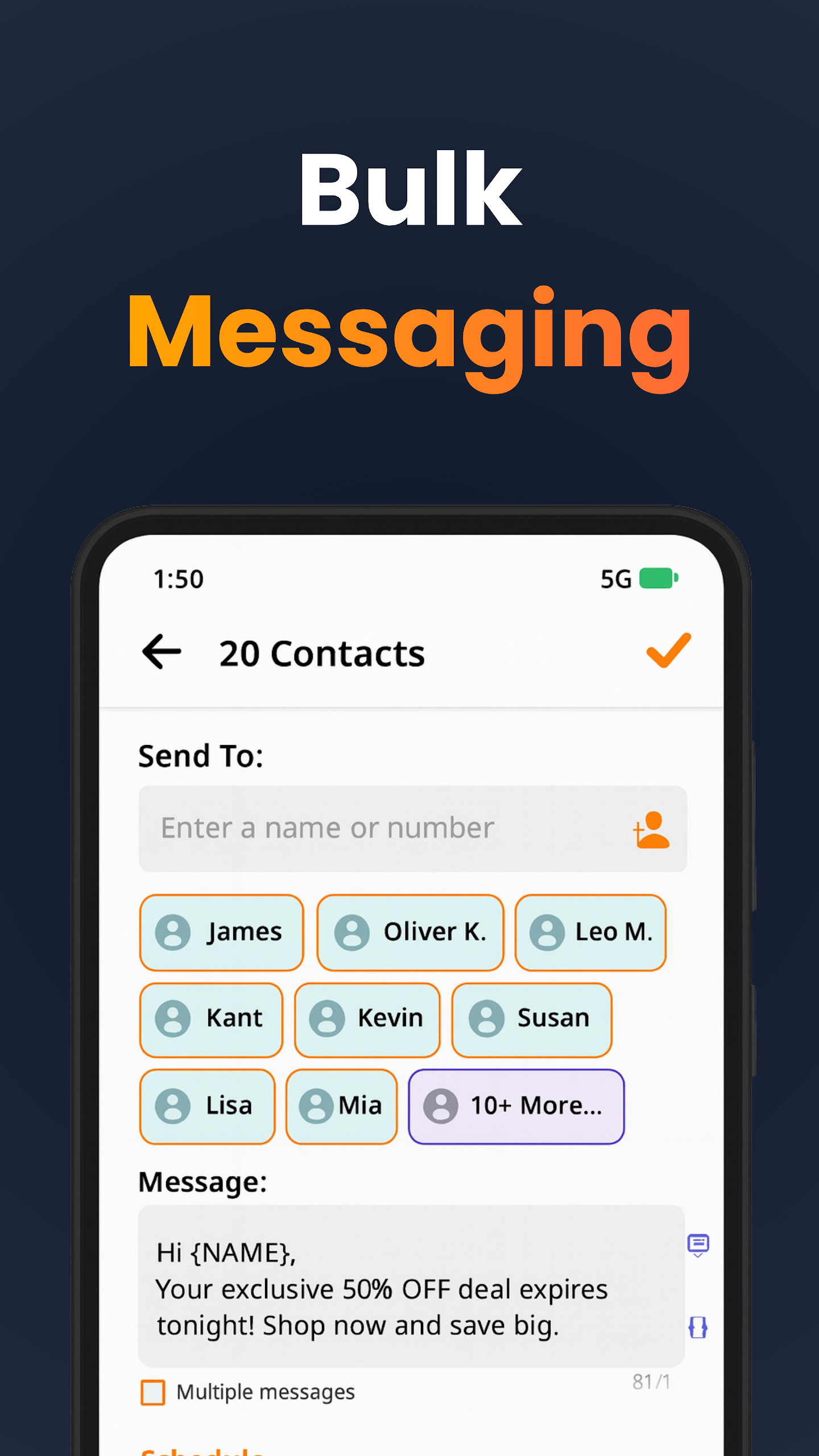 - Compatible with contacts, groups, WA broadcast lists, Telegram channels, and unsaved numbers.