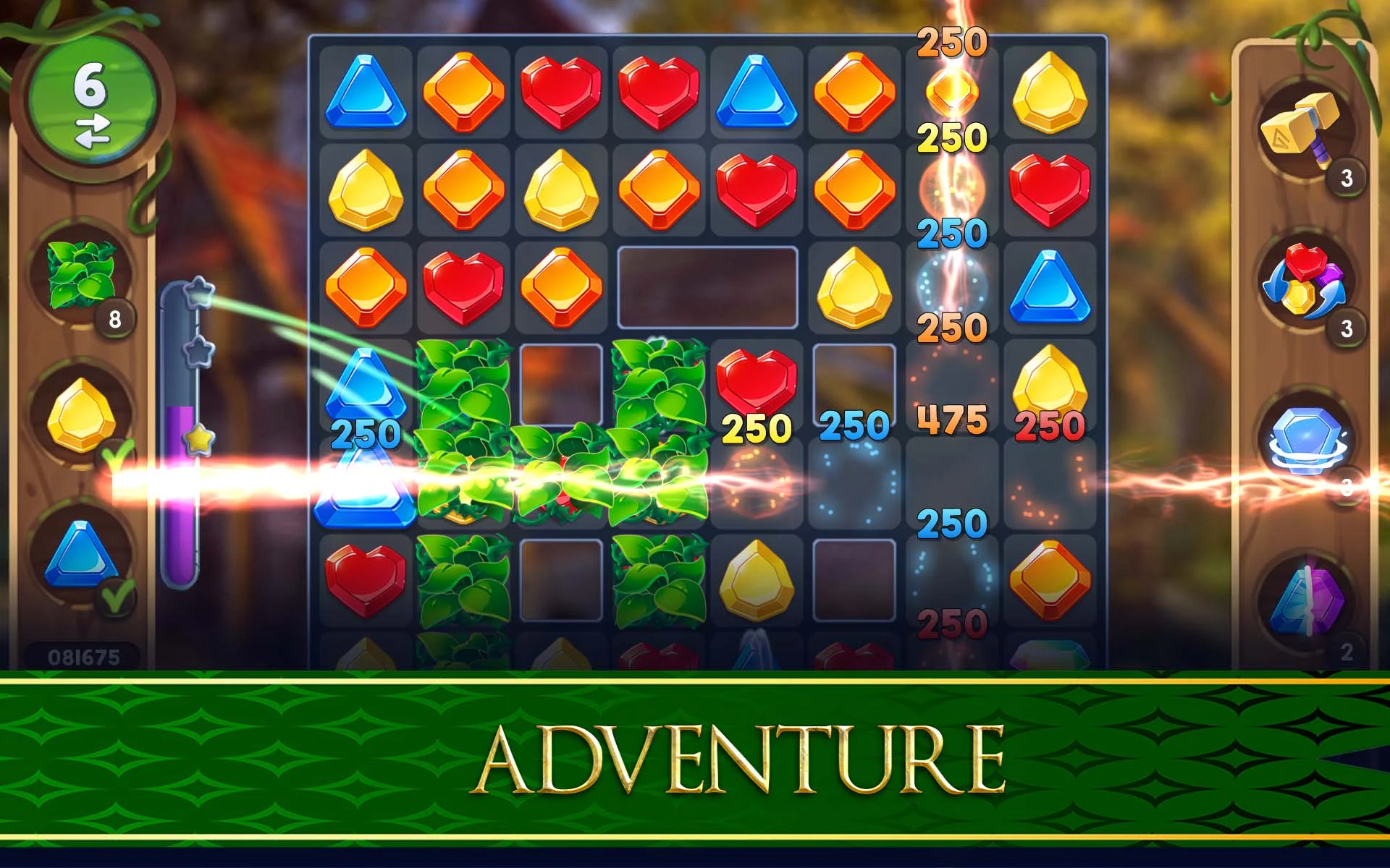 - Match 3 jewels to gather them