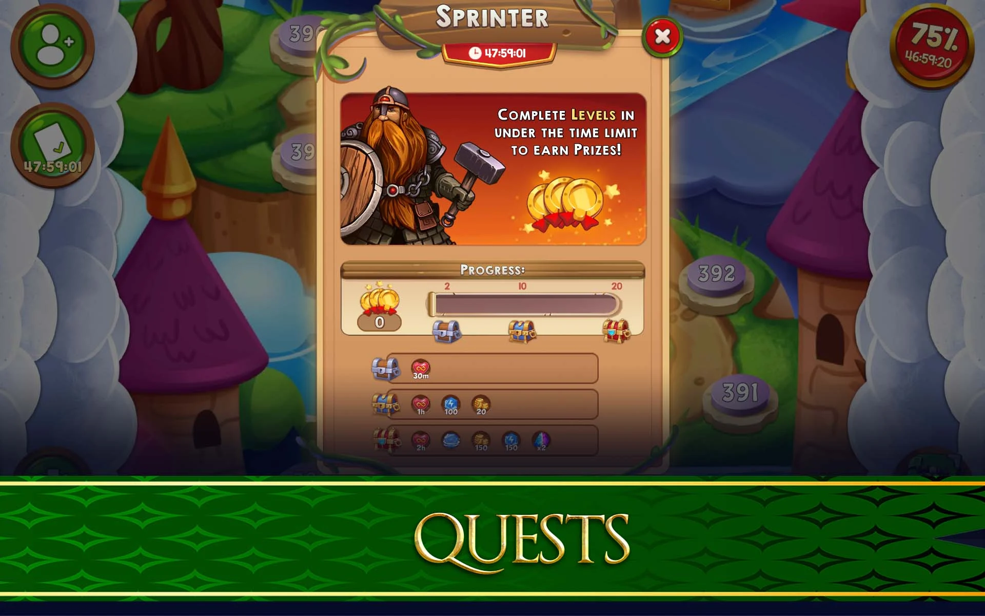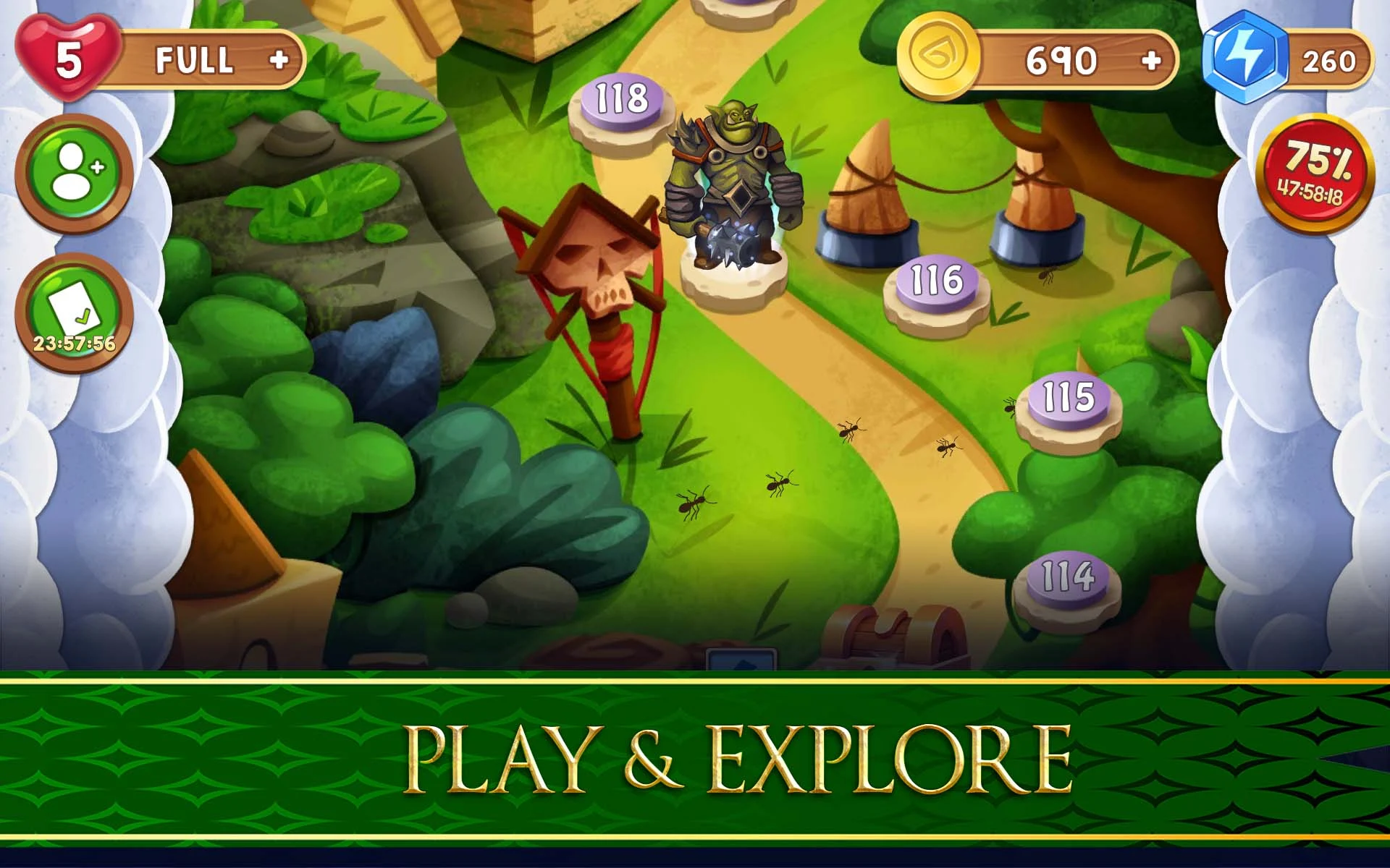 Embark on an enchanting quest with thrilling puzzles, countless levels, and magical power-ups in this captivating match-3 experience.