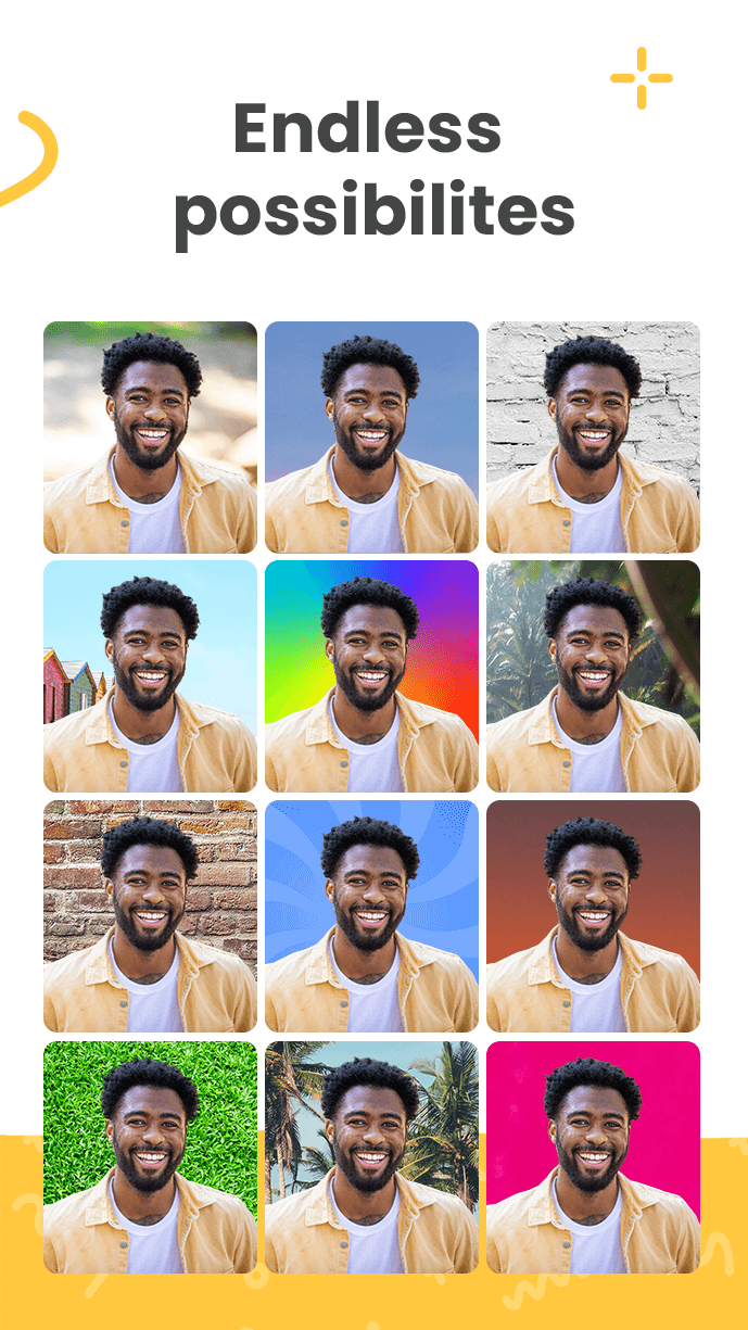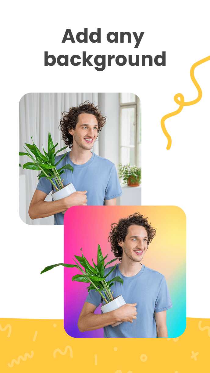 Removing the background of your photo will only take a few seconds. You can also change the background to a different color or add another image from our presets.