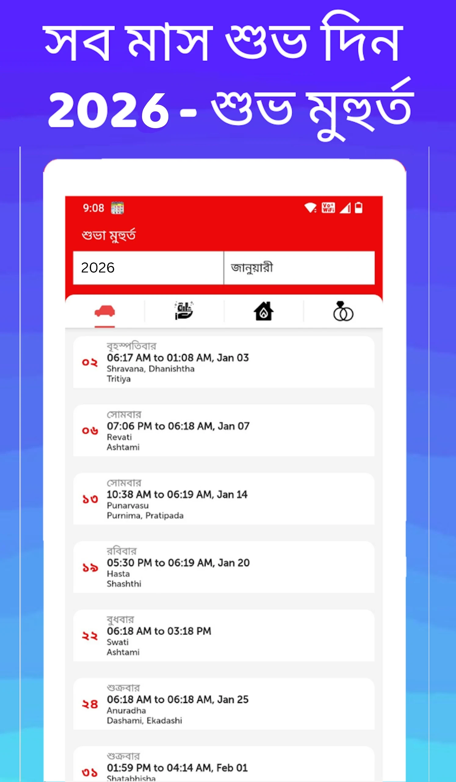 ● Shubh Muhurat dates, Bengali marriage calendar, Hindu holidays, festivals, Islamic Muslim holidays.