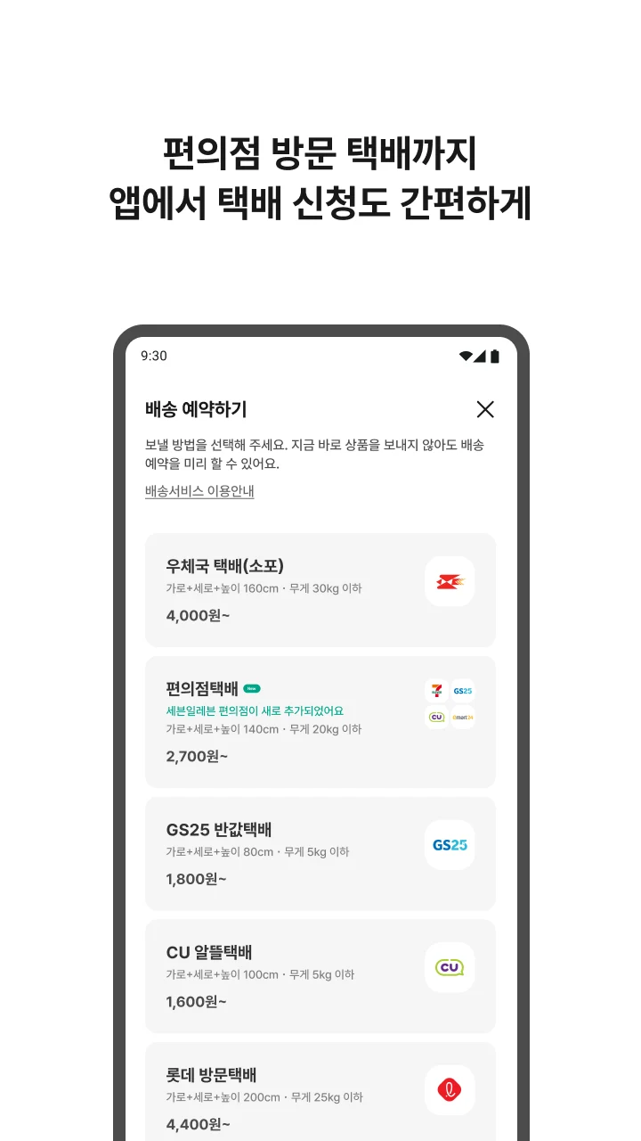 • Easily apply for and manage convenience store or doorstep delivery services via the Bunjang app.