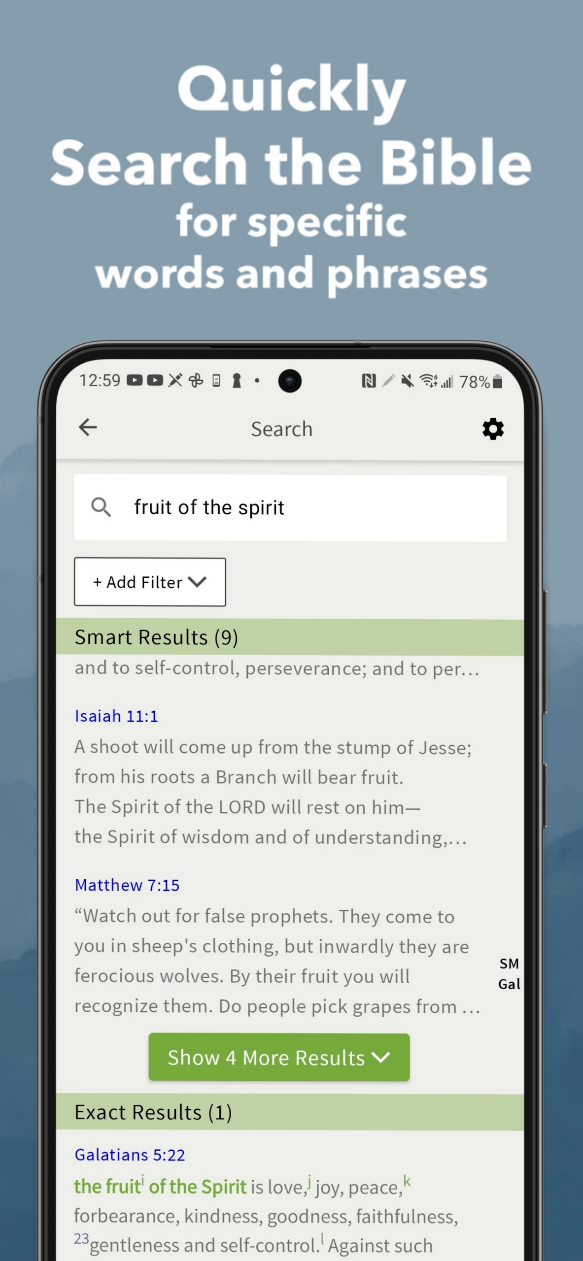 No requirement for a WiFi connection to reach your Bible, audio Bible, or other study tools. As long as your phone functions, your offline Bible app is accessible.