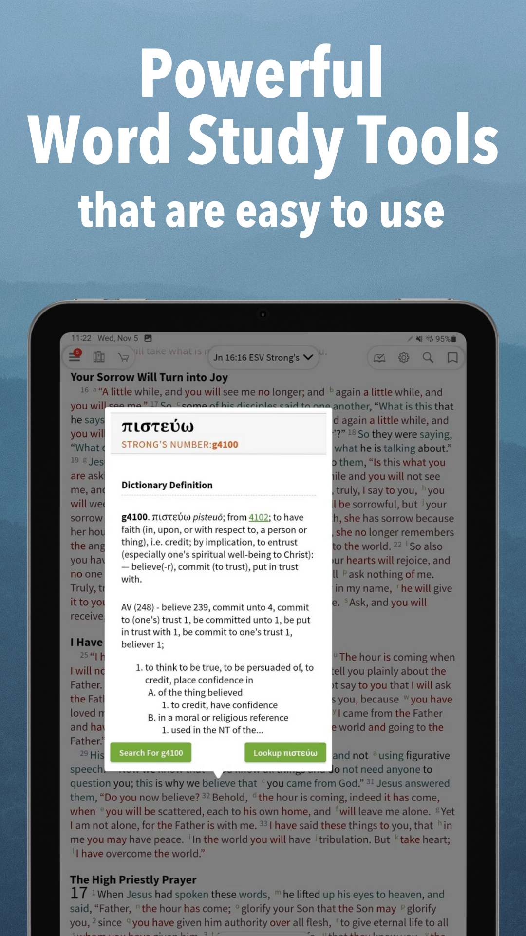 Access Scripture & study tools with a user-friendly Bible app
