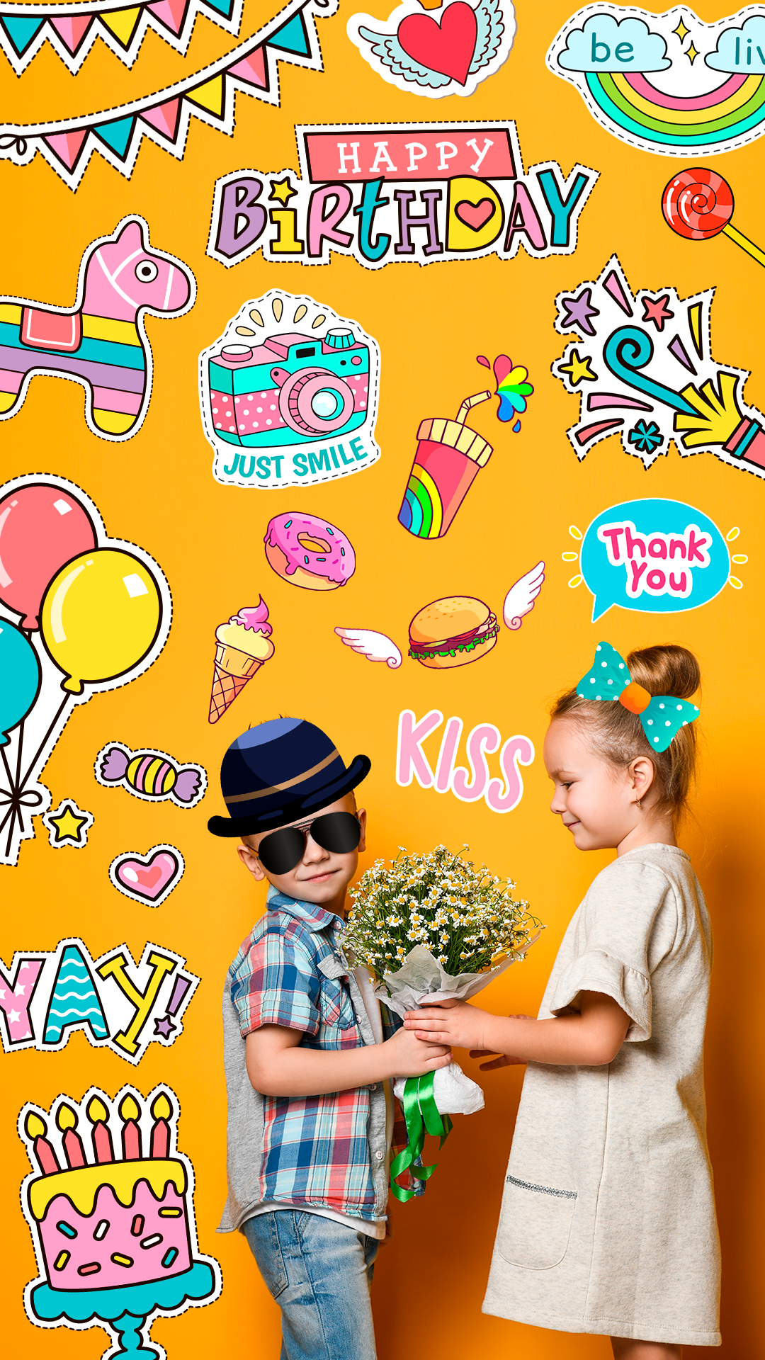 Utilize a delightful collection of birthday-themed photo frames and stickers within the editor.