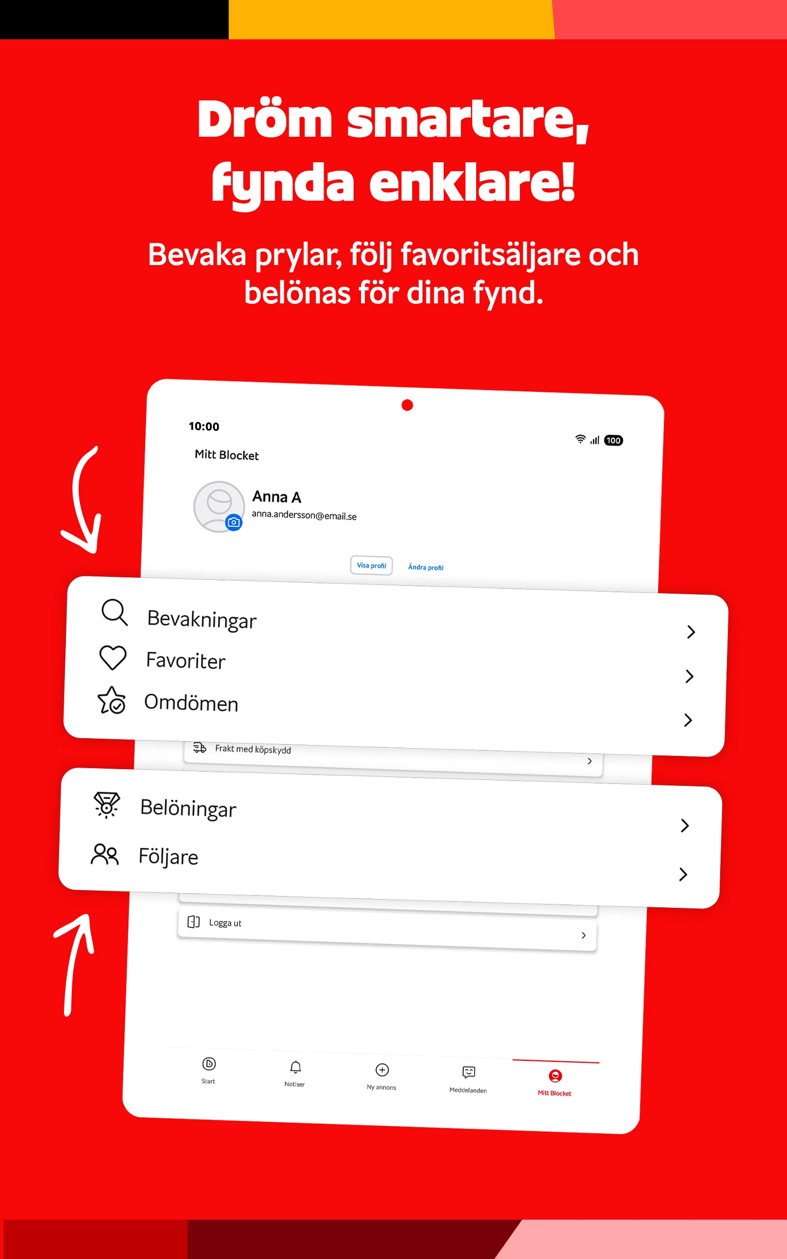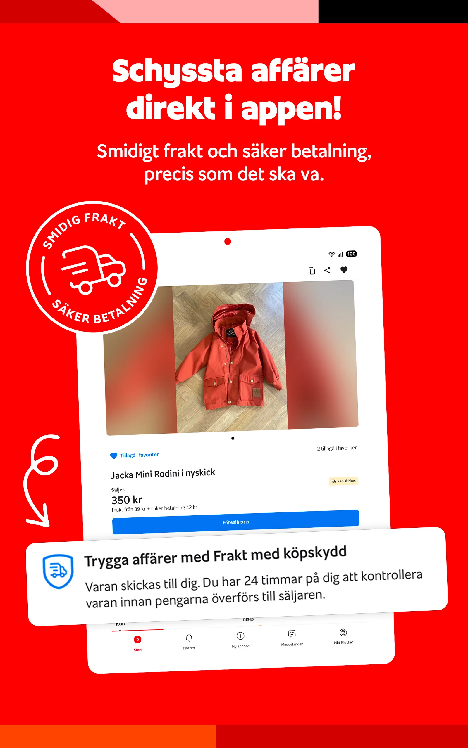 Buy and sell second-hand items easily on your mobile. At Blocket, 5 million users meet every week. Here you can find everything from furniture and bicycles to cars, boats, electronics, and branded clothing nationwide. It is simple and safe to buy items remotely through our secure shipping and payment methods. Receive push notifications on items you are keeping an eye on or when someone responds to your ad, and easily place ads directly in the app. Download the app today to buy and sell second-hand, thrift, or new items!