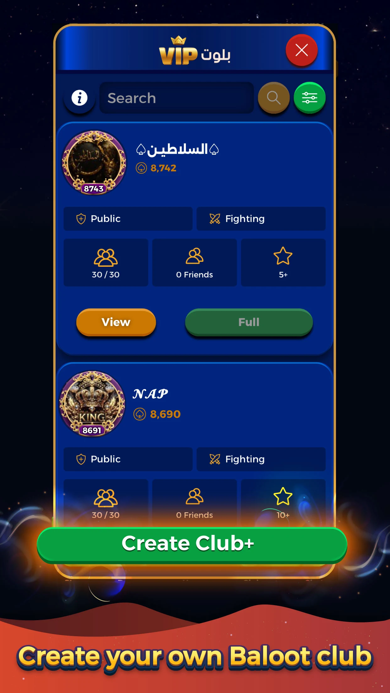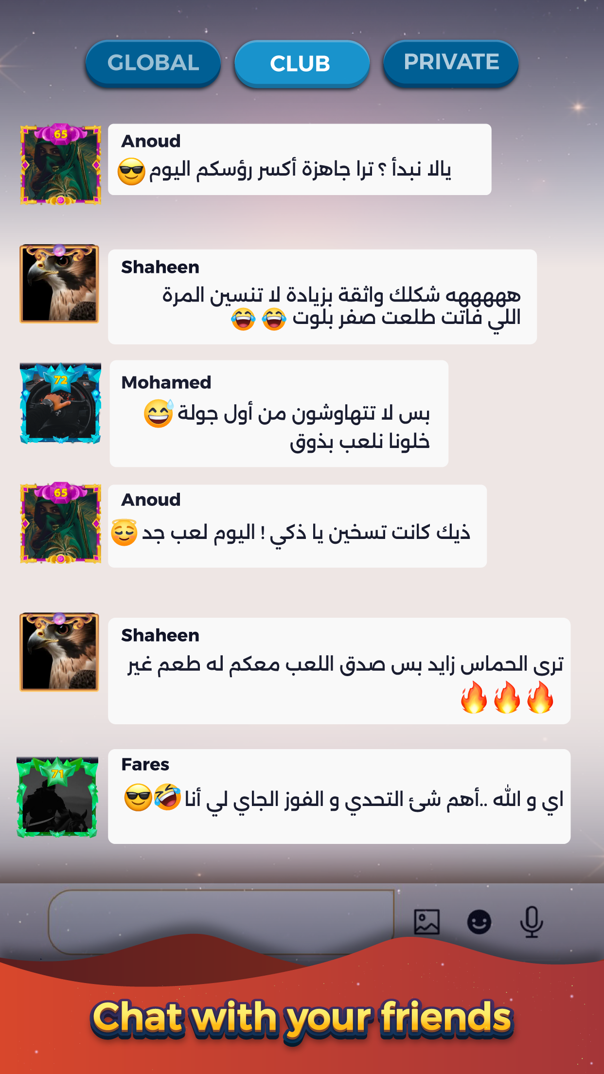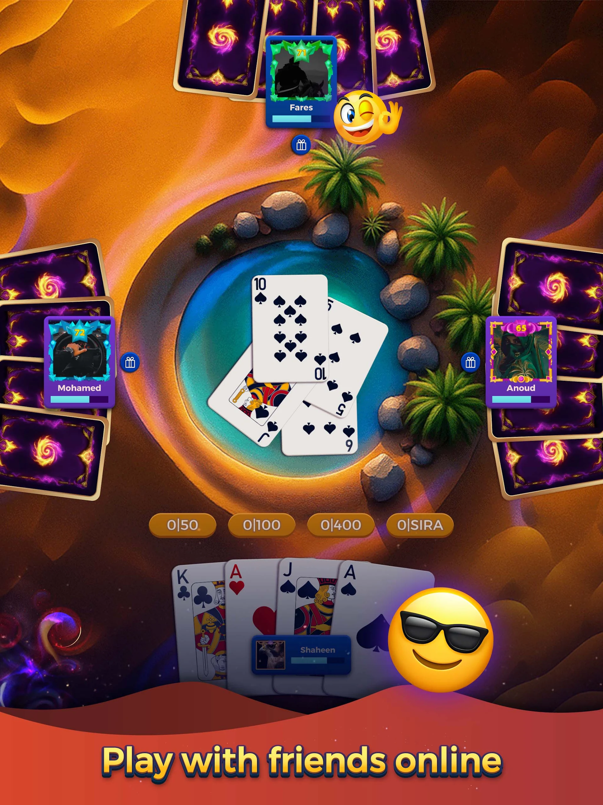 Baloot is not just a game; it's a lively, strategic, and inclusive community where top Baloot players gather, and it's further enhanced on VIP Baloot with its exclusive social features! Connect with individuals from all over the world while engaging in the most favored online multiplayer game in the Arab region.
