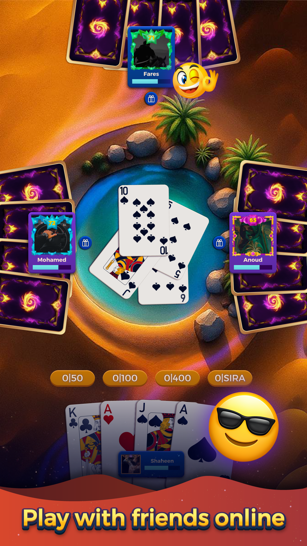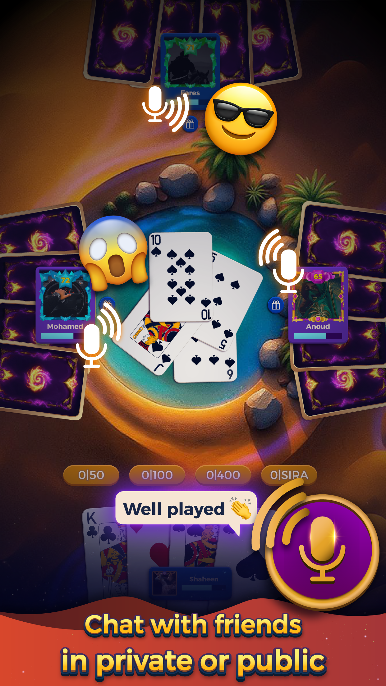 Whether you refer to it as Baloot, ballot, or balut, it's a game that is simple to grasp but challenging to master. However, with VIP Baloot, you will evolve into a true Baloot expert and relish the game at any time and anywhere. Ready to immerse yourself in the realm of a renowned strategic and multiplayer card game with voice chat? Join the online action!
