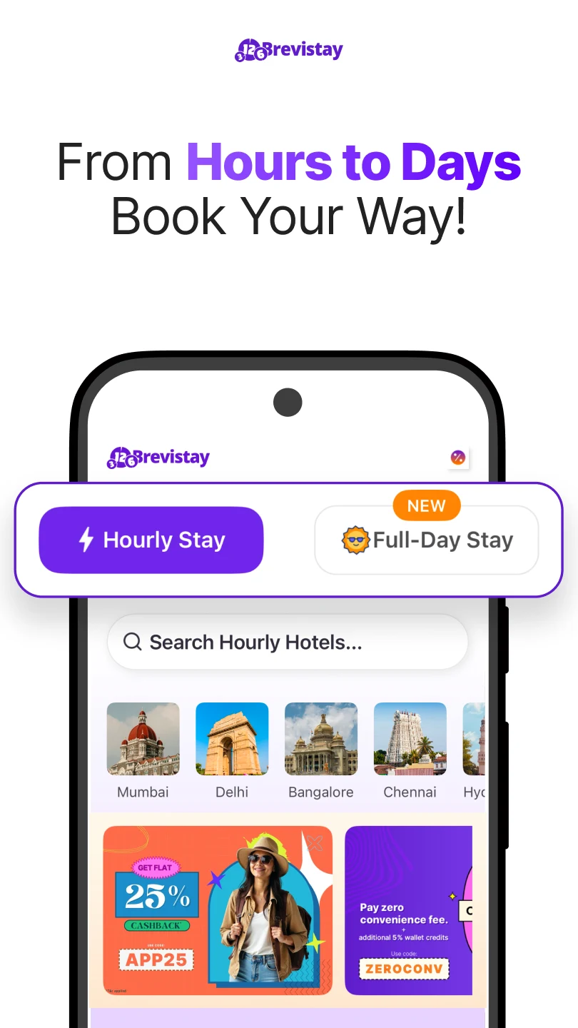 Are you yearning for a spontaneous escape without burning a hole in your pocket with an overnight stay? Your search ends here! Utilize the Brevistay app to book hotel rooms on an hourly basis and pay only for the hours you stay.