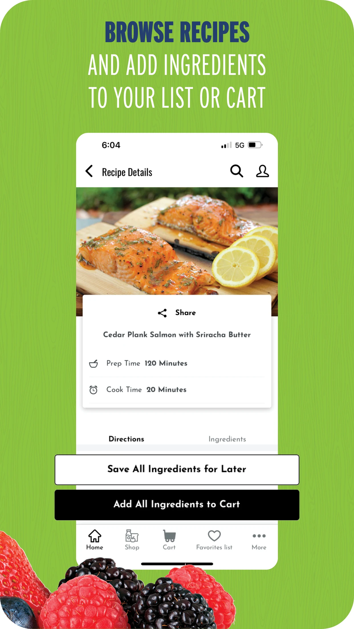 • Search for, save, and share your favorite recipes and add their ingredients to your shopping lists.