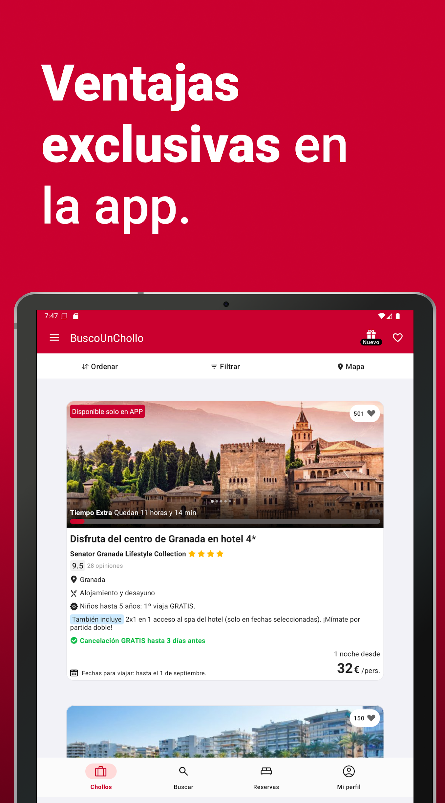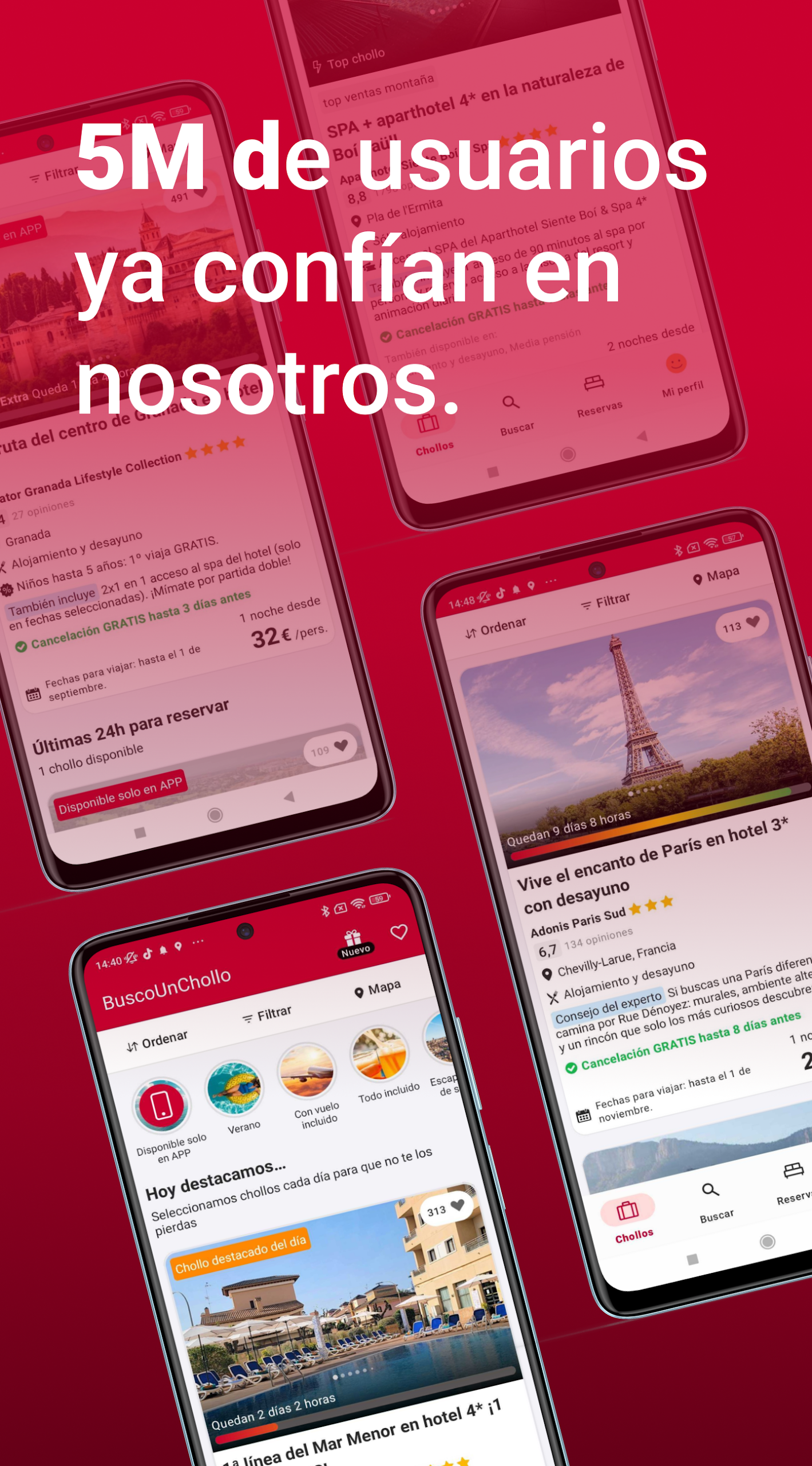 With the BuscoUnChollo - Travel, Hotel, and Vacation Deals app, you can: