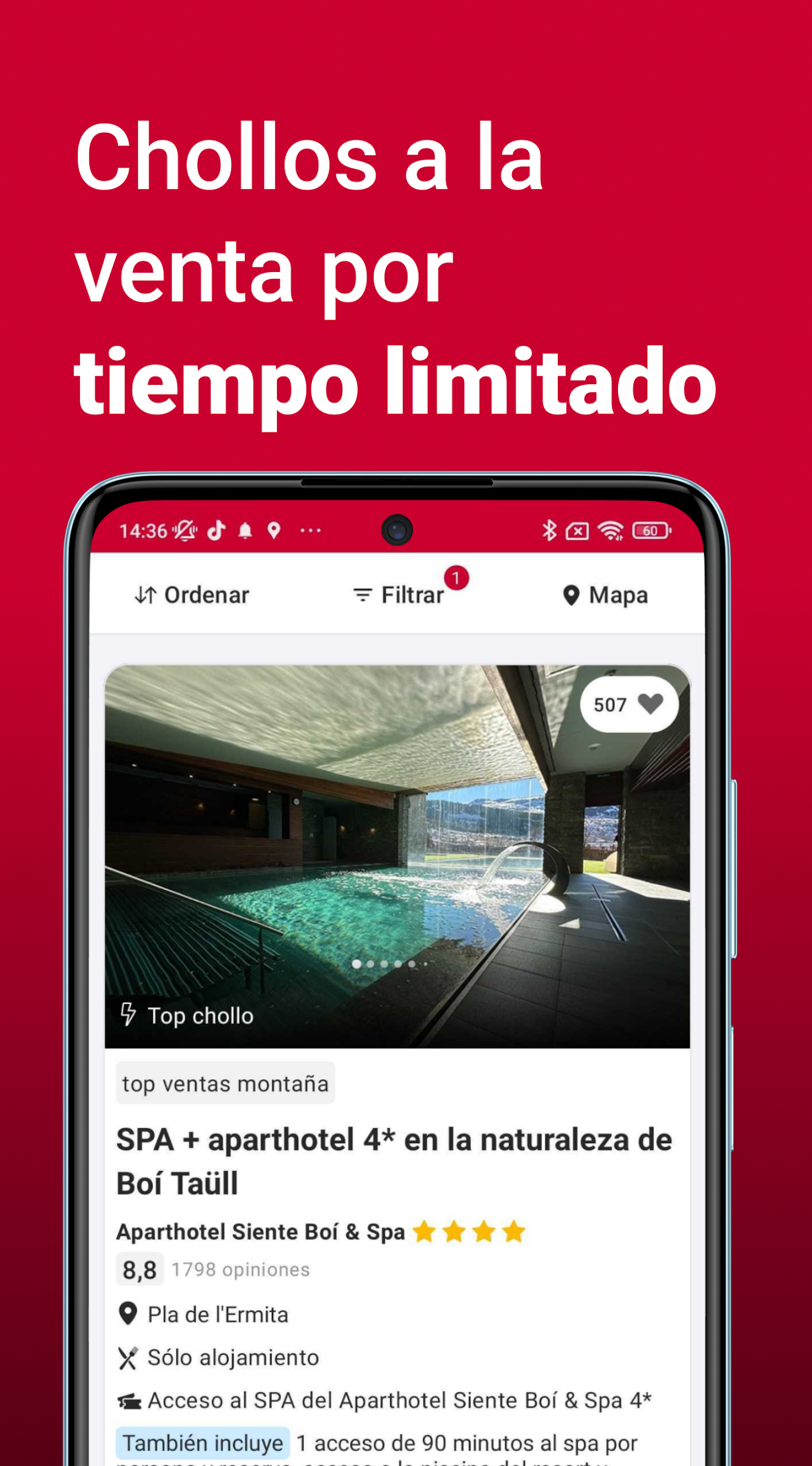 ● BuscoUnChollo - Travel, Hotel, and Vacation Deals is a "flash" travel app: our great deals on trips, getaways, hotels, and vacations are available for a LIMITED TIME (between 5 and 10 days). Remember, we do not inundate you with offers; we only provide amazing deals! Don’t miss the chance to book the deal you love before it expires or sells out!
