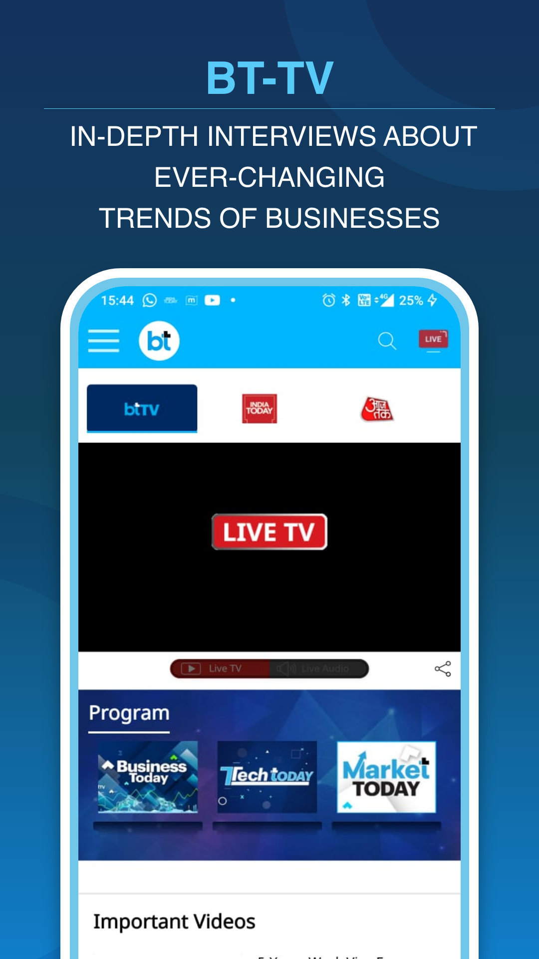 BTTV has established itself as one of India's fastest-growing platforms for business news and analysis in the digital video space. It's the newest extension of the Business Today brand and supports India Today Group's unified strategy across on-stands, online, and on-air channels. With a vast cross-platform subscriber base and a strong presence across Instagram, LinkedIn, WhatsApp Channels, and BusinessToday.in, BTTV continues to build its reputation as a leading destination for trusted business news and analysis.
