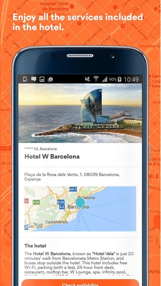 Booking a hotel room by the hour is easy with just three steps for accommodations in 3, 4, and 5-star establishments worldwide. The BYHOURS app features a mix of independent hotels and renowned chains such as Sheraton, Hilton, Starwood, Melia, Silken, Best Western, Hyatt, Barceló, Sercotel, Holiday Inn, Iberostar, NH, among others.
