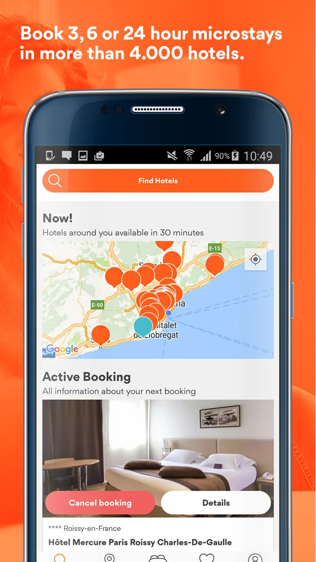 - Premium accommodations: you can now reserve hourly rooms in over 4000 hotels rated 3 to 5 stars.