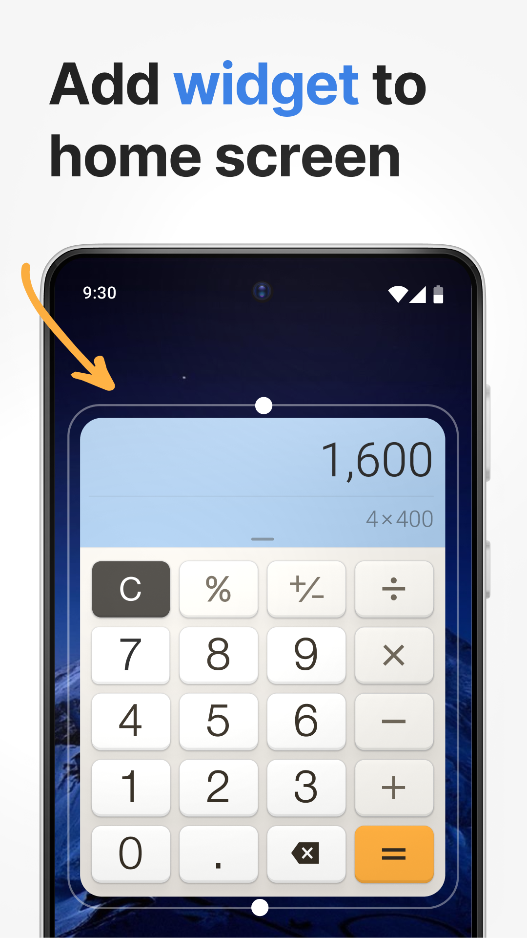 Calculator WIDGET. Perform quick calculations straight from your home screen using the widget.