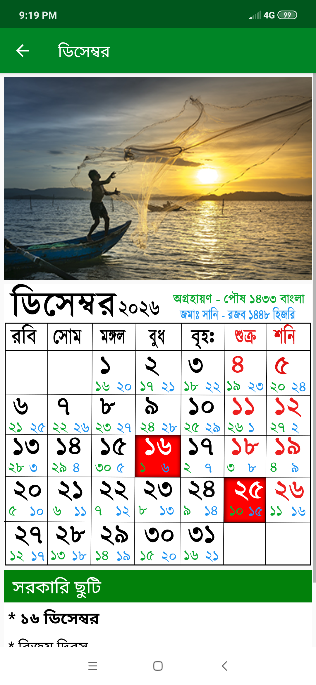 The Bangla Calendar for 2025 has been crafted with great attention to detail. We hope our calendar app meets your expectations. Your encouragement through a 5-star rating would be appreciated. Thank you for being part of our journey. We are eager to hear your thoughts.