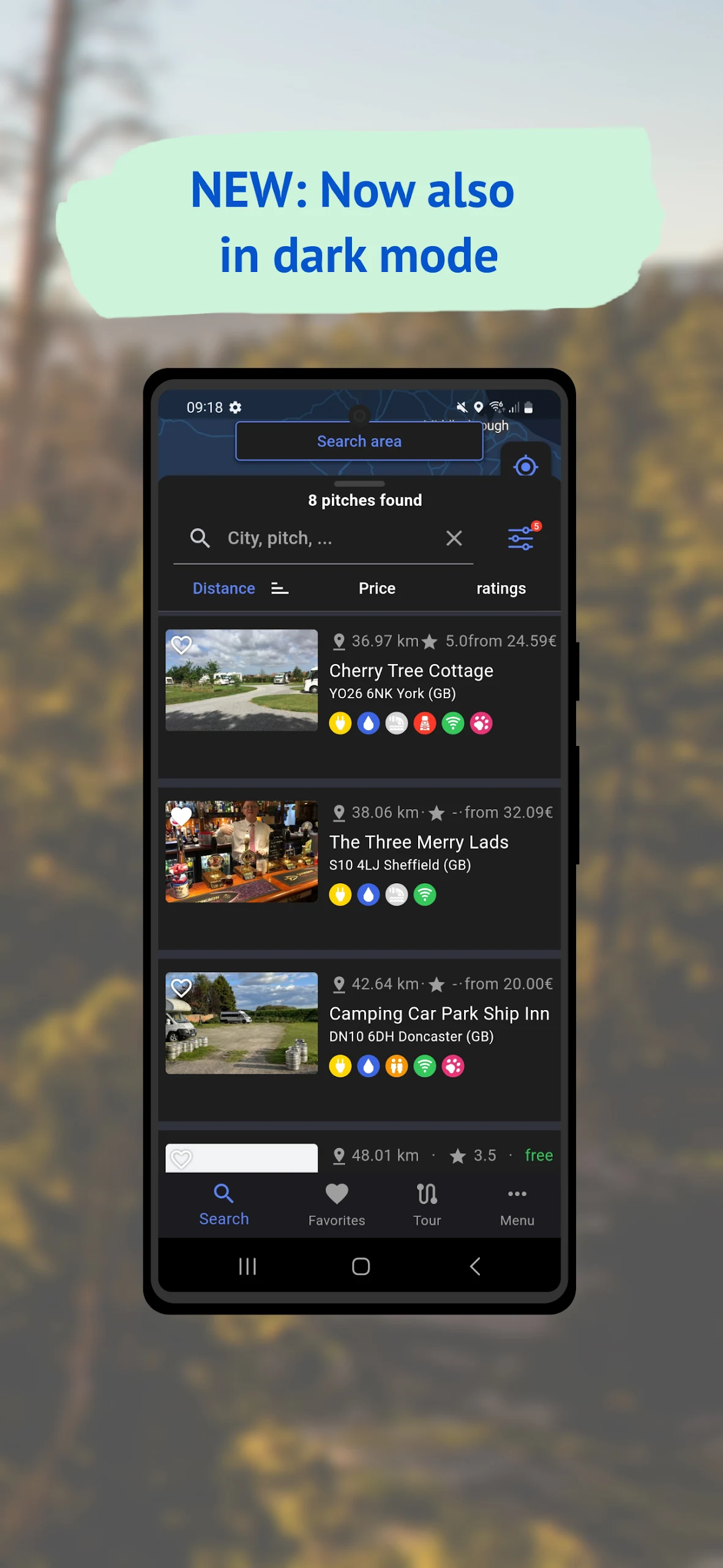 Discover campsites & pitches across Europe with detailed reviews, images, and an intuitive tour planner for your adventure!
