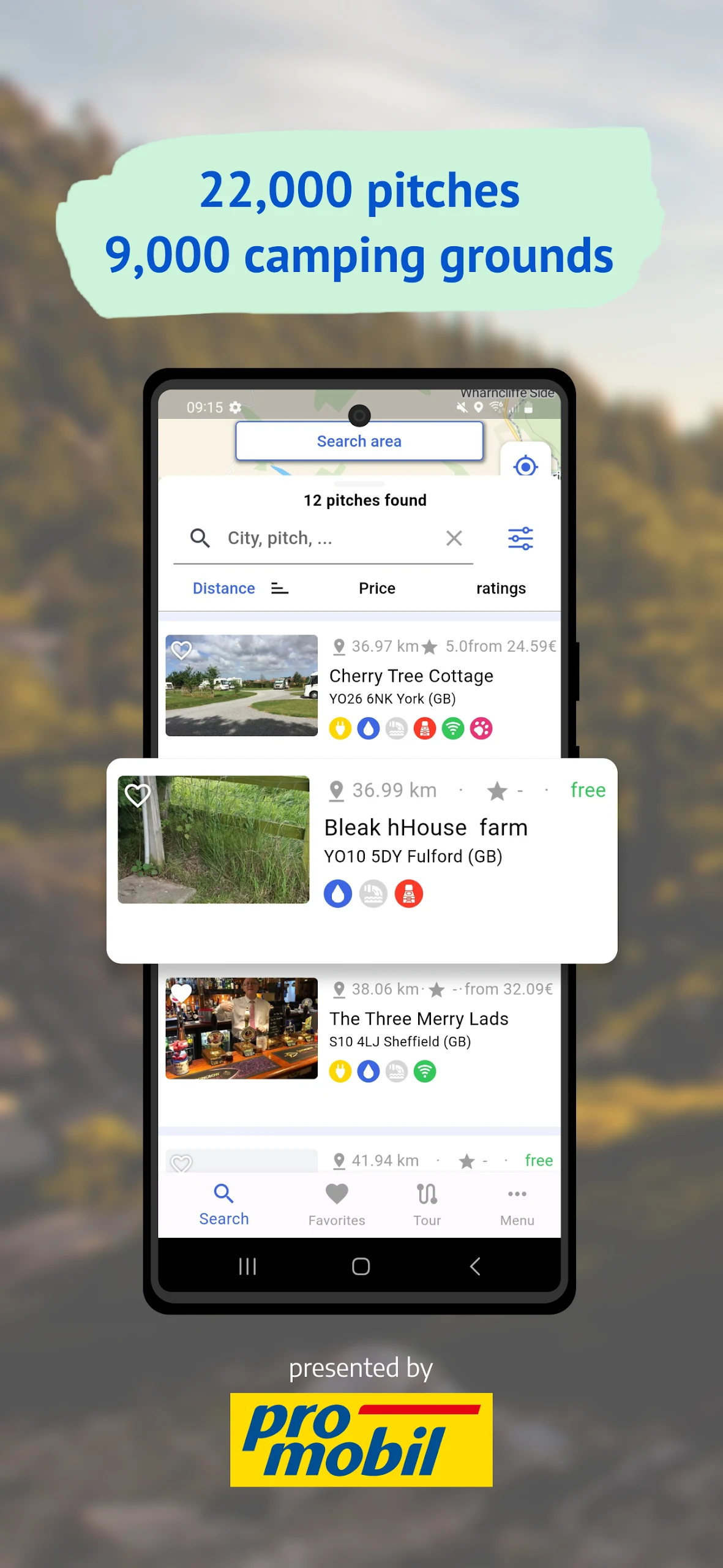 The original app for pitches and campsites from promobil, established in 2010. Recognized as the 'Best App 2021' in the camping category by the F.A.Z. Institute! Access a diverse range of pitches for motorhomes, caravans, and campers, alongside campsites, parking areas, waste disposal stations, and service partners with extensive information, ratings, and community-generated photos. Discover locations across Germany, France, Italy, Spain, Sweden, and other European nations.