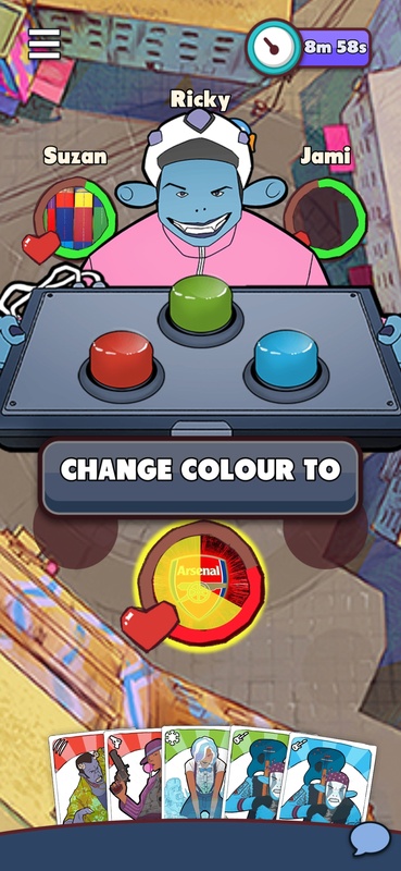 Players need to match either the color or type of their card to the central card on their turn. Each card possesses unique powers, allowing you to launch a FIRESTORM or FROZEN attacks on opponents. Turn the tide of a game by executing clever counter-strategies to deal amplified damage! Characters boast exclusive animations in a 2D graphic novel and comic aesthetic.