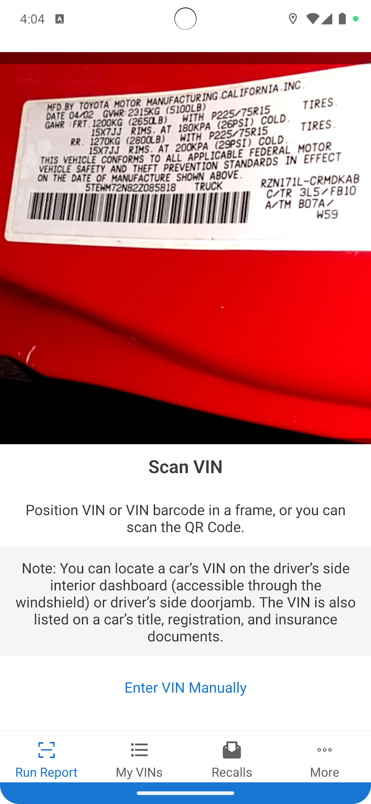Scan VIN barcodes to obtain CARFAX Reports (Android 2.1+), or manually enter VINs.