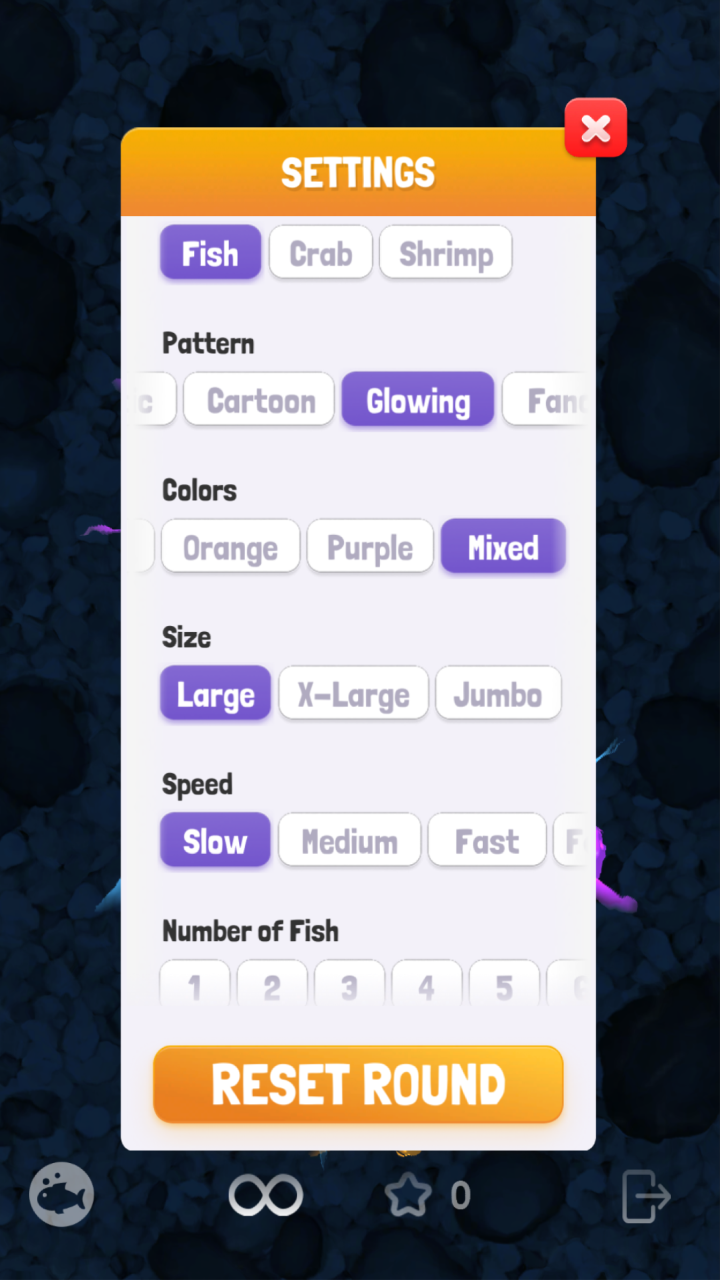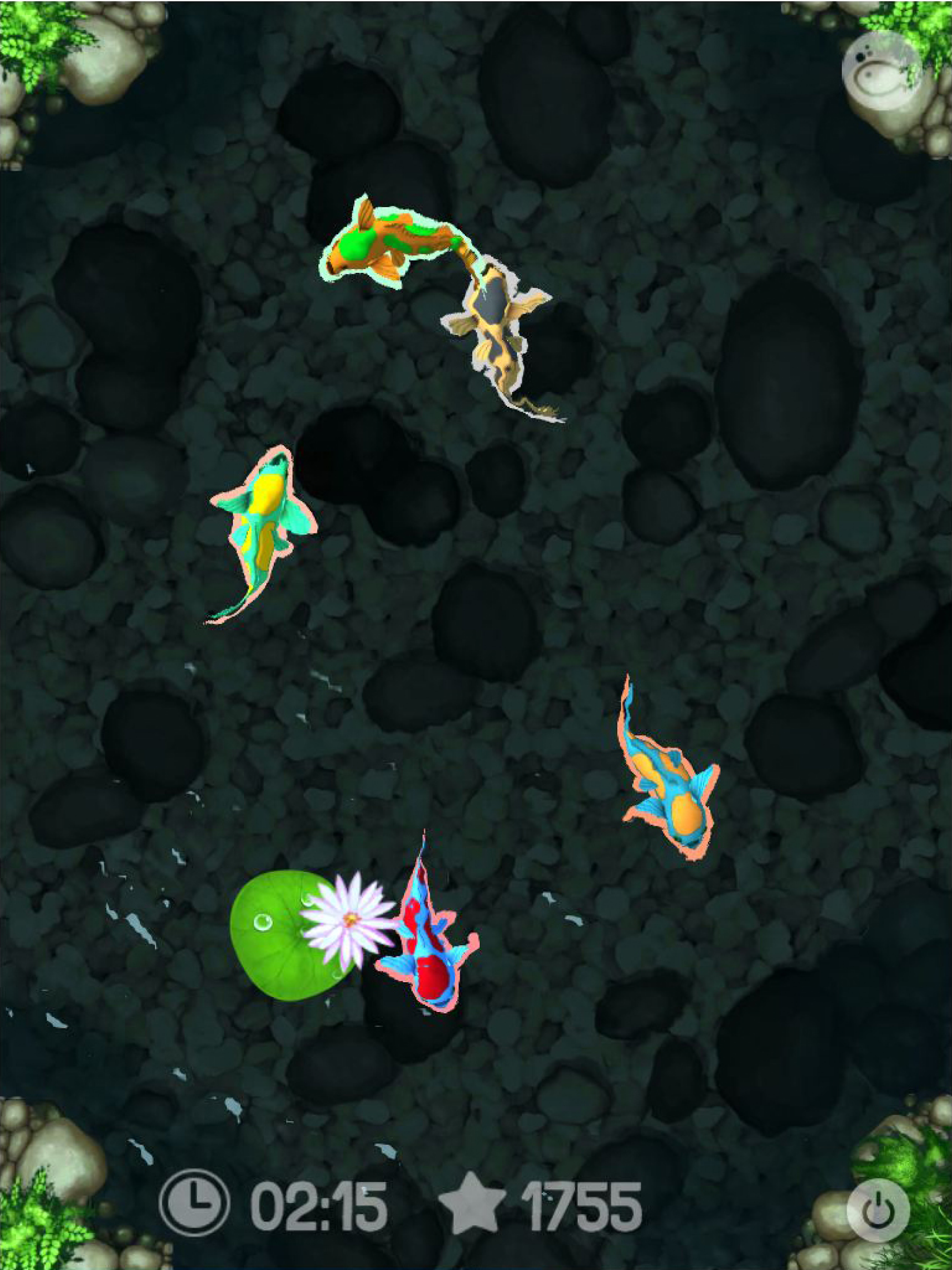 • To personalize the screen for your kitty, tap on the fish in the upper right-hand corner. Select any of the 10 different fish and pond options and hit reset.
