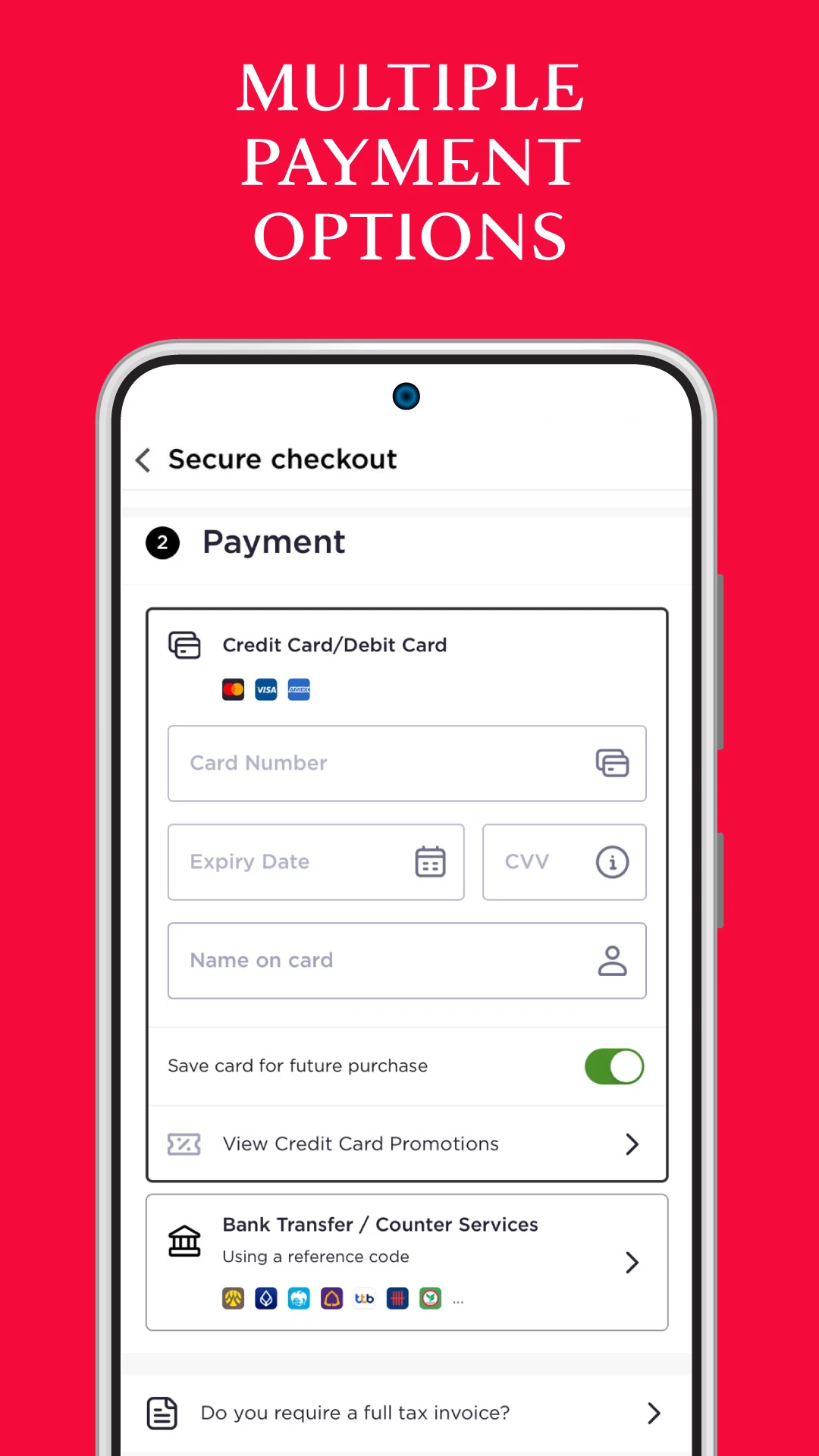 - Choose from secure payment options including credit card, bank transfer, cash on delivery, and more.