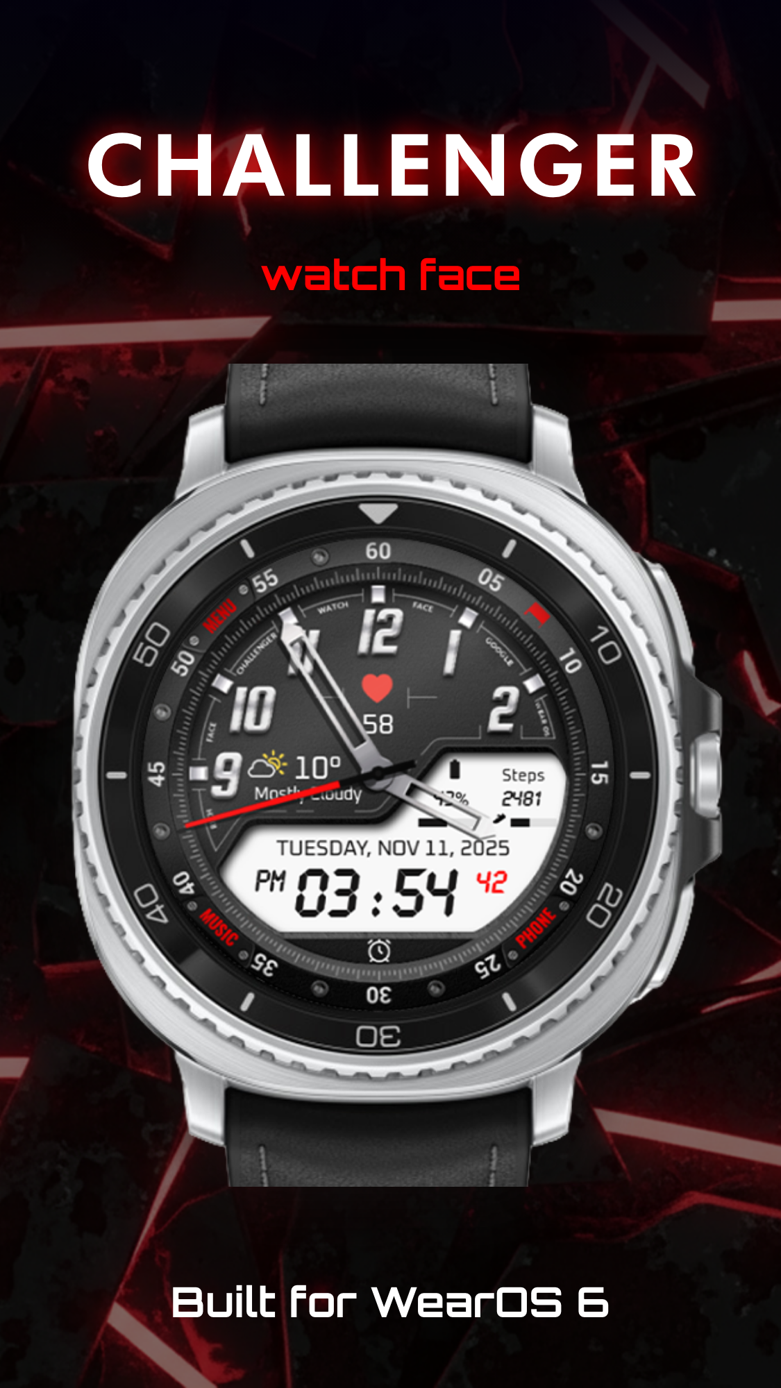 Note: This watch face cannot be installed on smartwatches with TizenOS (Samsung Gear 2, 3, ..), Galaxy Watch 7, Galaxy Watch Ultra 7, or any other OS except Wear OS.