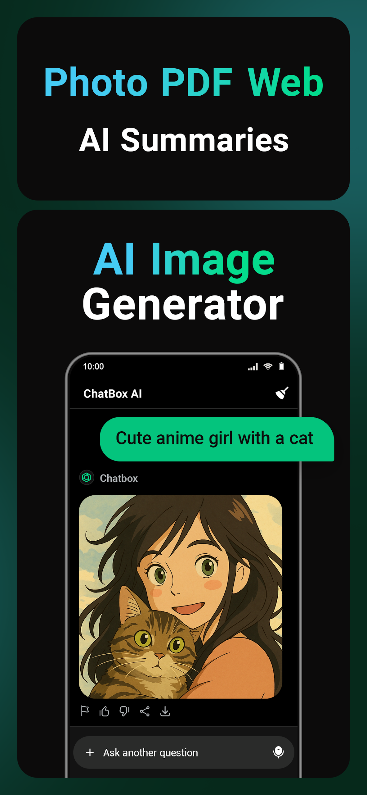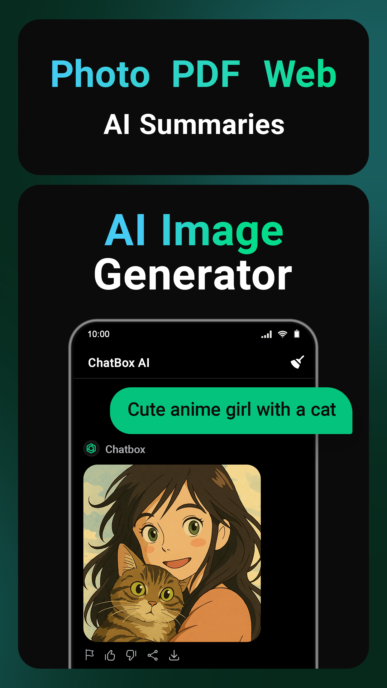 Utilizing AI bots like ChatGPT and GPT-4o, our AI chat application can swiftly produce summaries for lengthy texts, webpages, and PDFs.