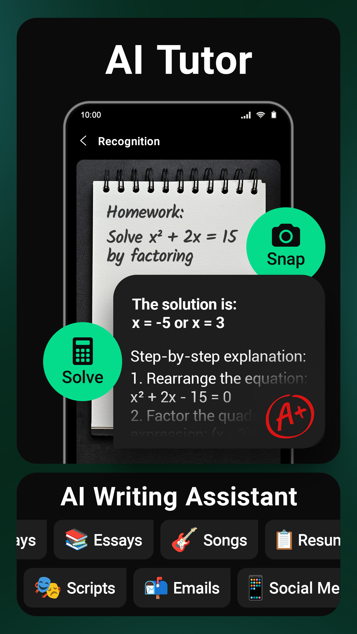 Employ ChatBox as an AI math solver to aid your studies. Like an AI tutor, the app supports students across various subjects including math, chemistry, biology, physics, and more.