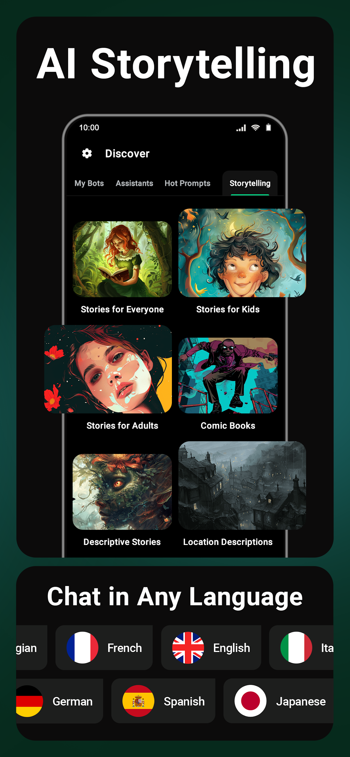 Driven by top-notch AI technologies like ChatGPT, GPT-4o, this AI story creator can develop illustrated stories for both children and adults, comic books, descriptions, and more.