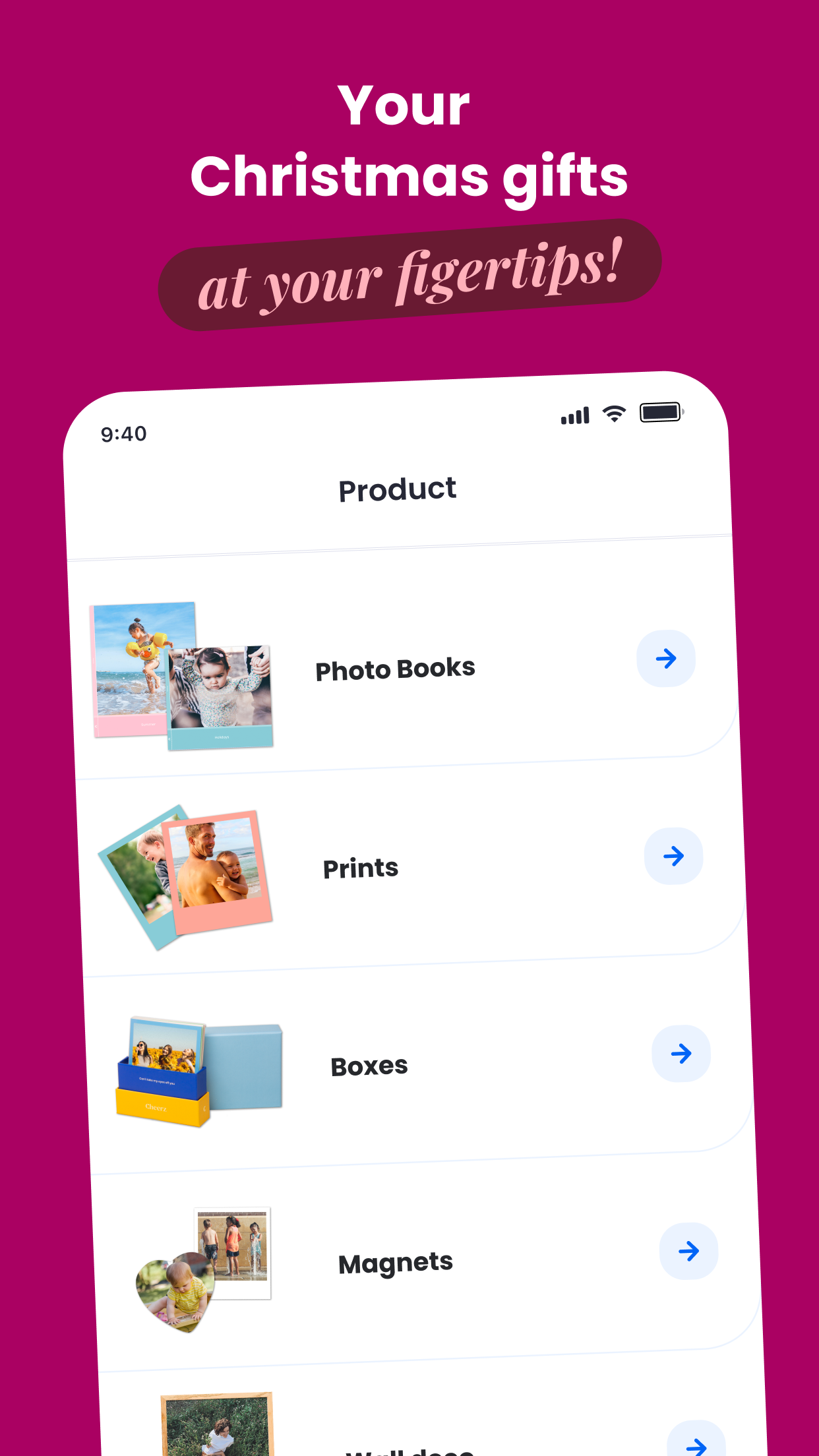 Easily order photo prints straight from your phone: think photo albums, prints, magnets, frames, and posters... All without leaving your home. It's like magic, isn't it?
