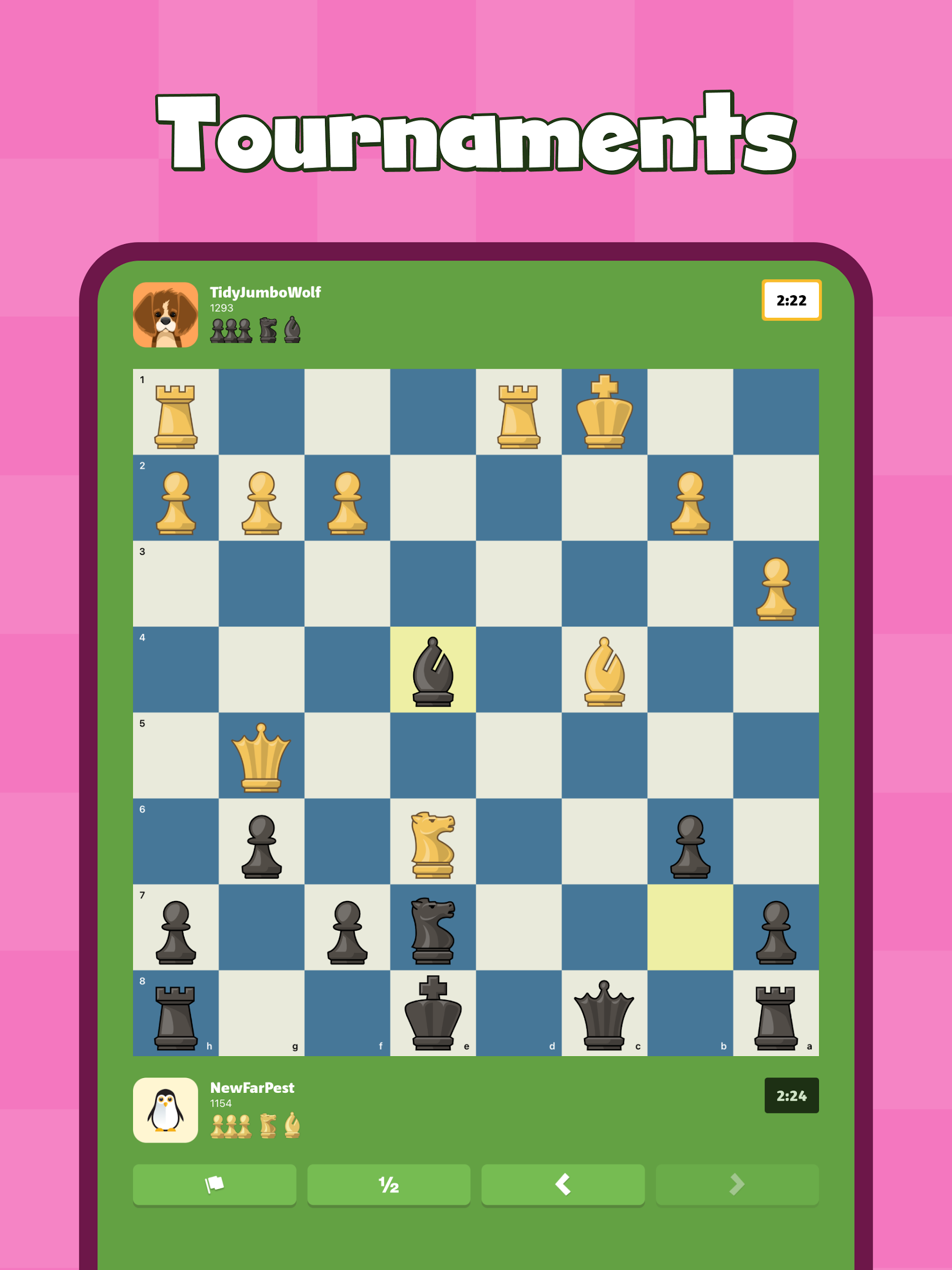 Improve your chess skills with our user-friendly ChessKid app! Access free online and offline chess games, play with friends, challenge chess bots, and test your skills against a computer. Our app is designed for kids, parents, and coaches, offering both basic rules and advanced strategies in a safe, ad-free environment. Enjoy self-teaching chess tutorials to learn valuable moves.